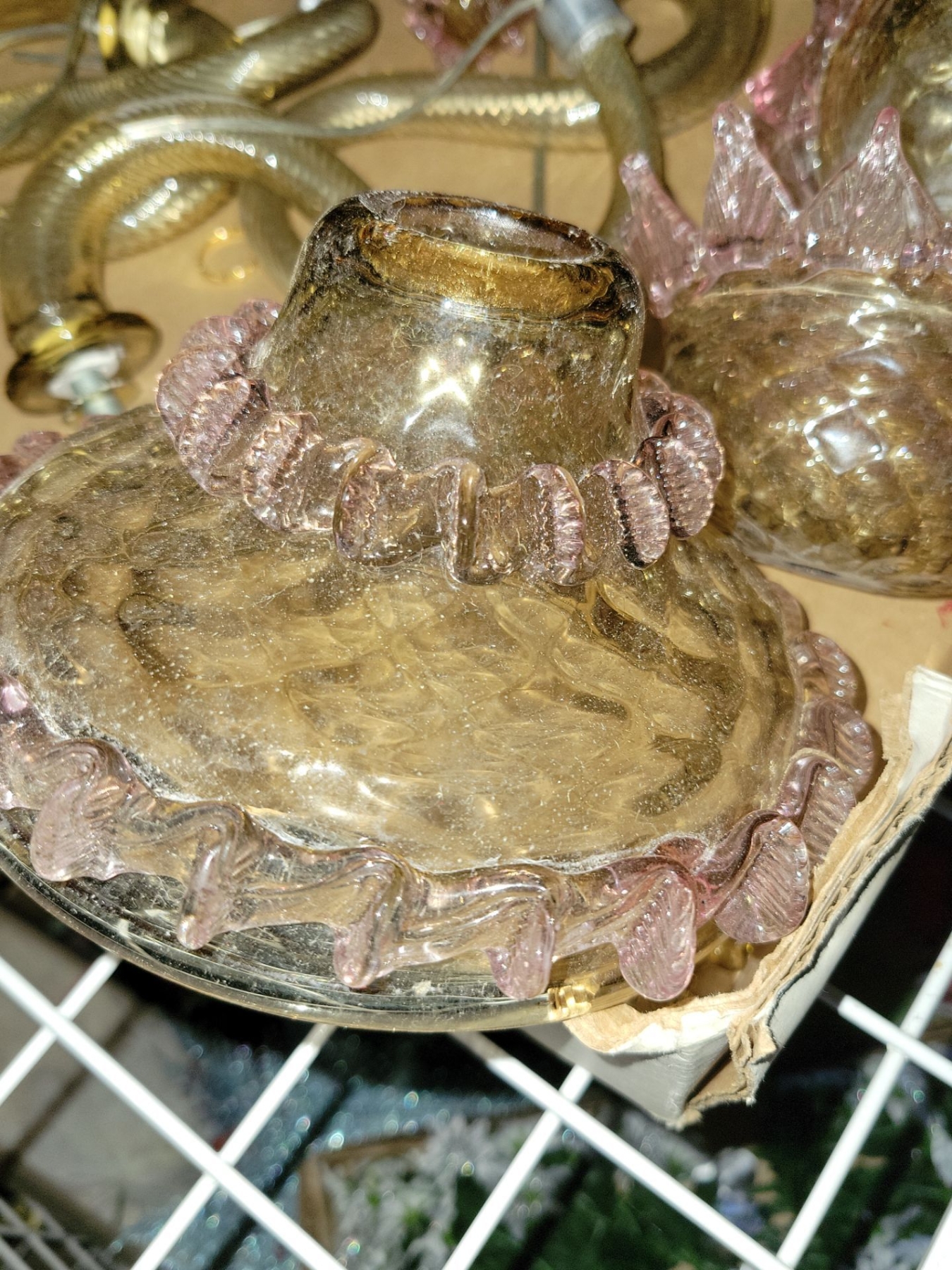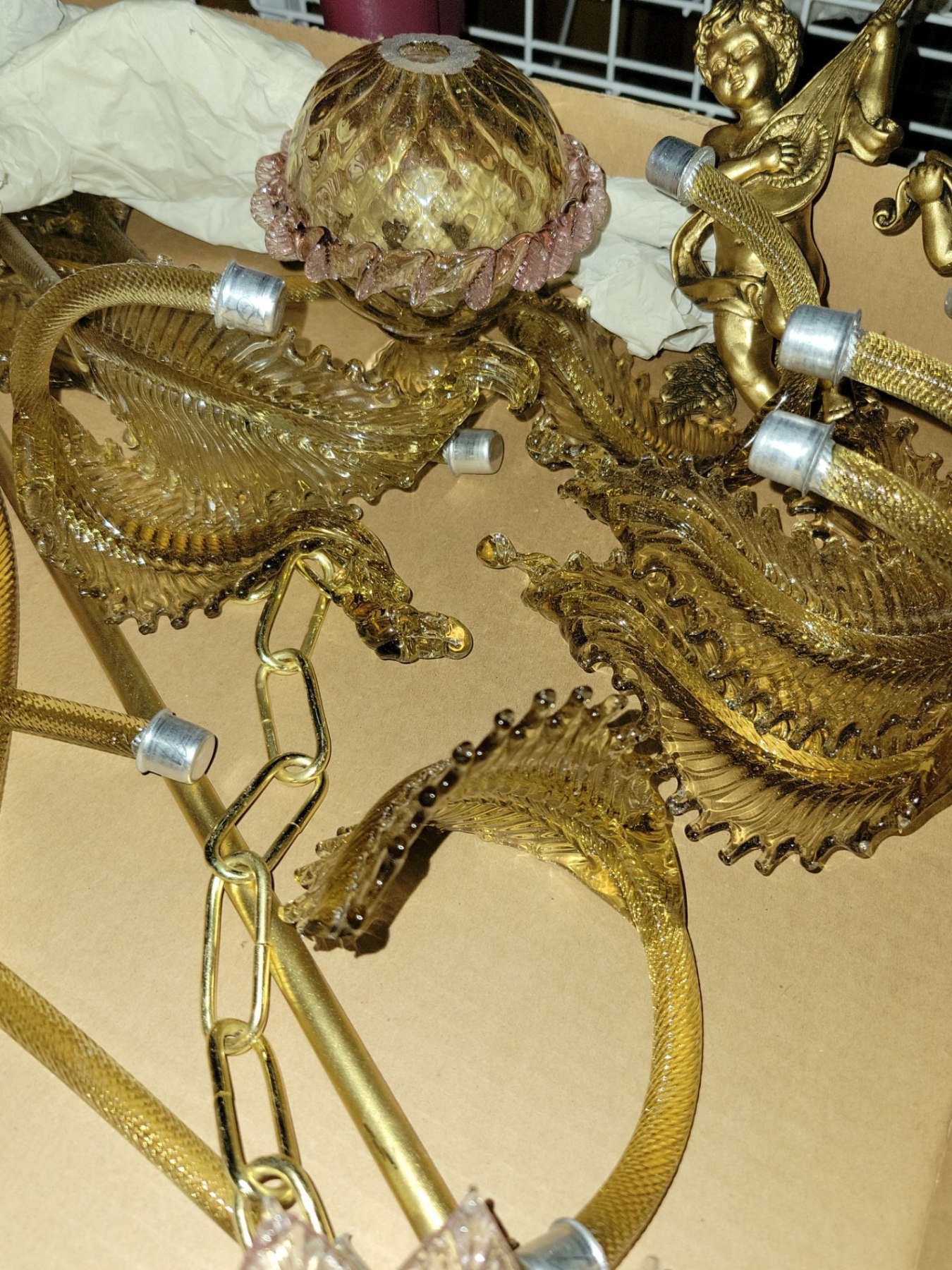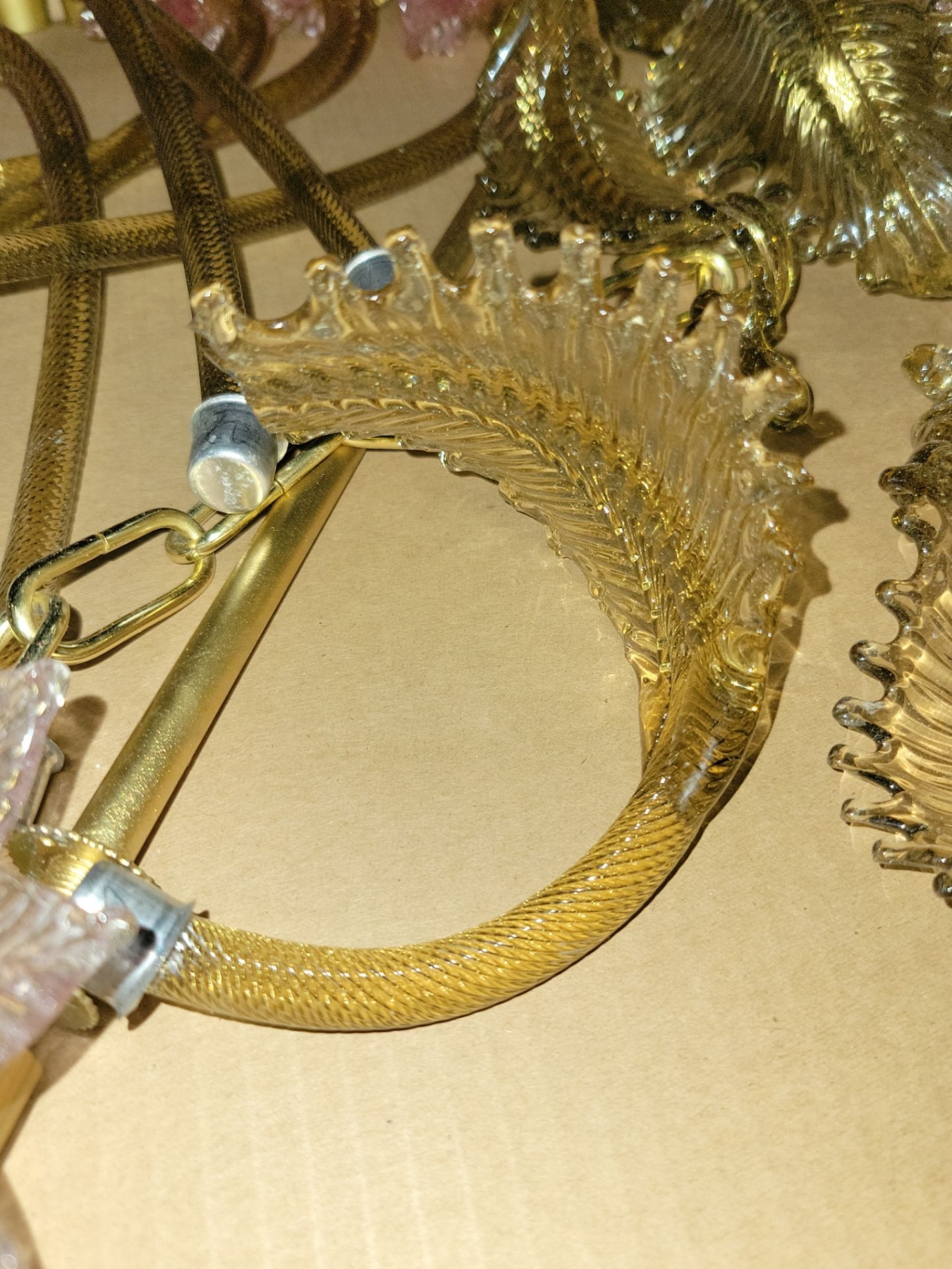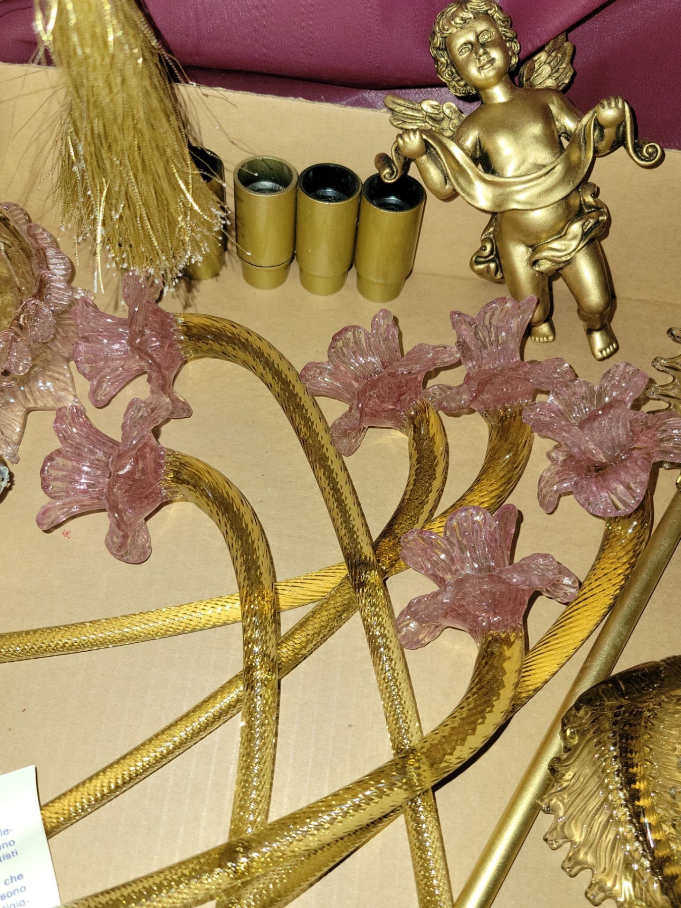 Breathtaking Murano Glass Wedding Chandelier - Pink Glass & Gold Cherubs