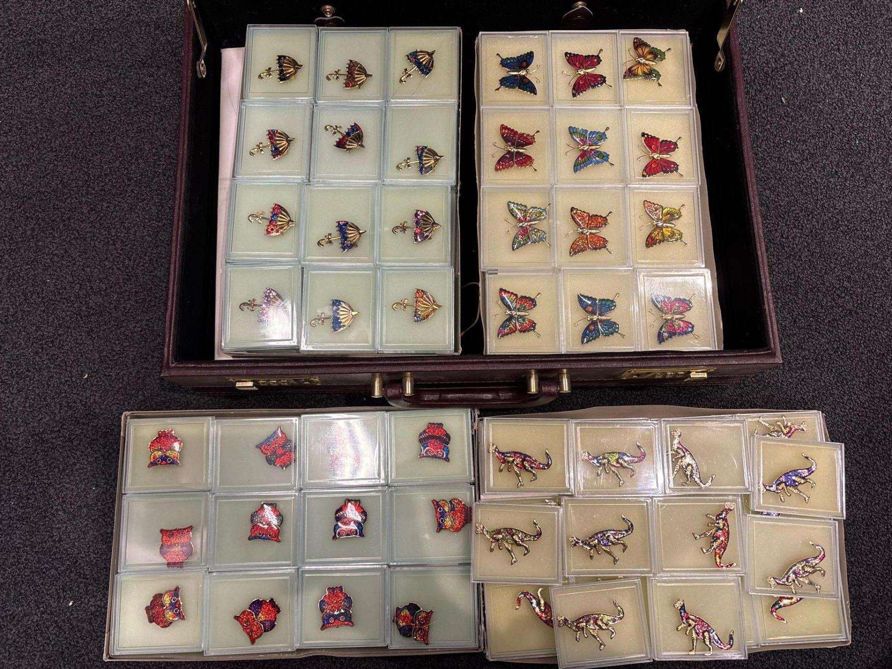 Briefcase of Costume Pins - Animals, Dinosaurs, Umbrellas