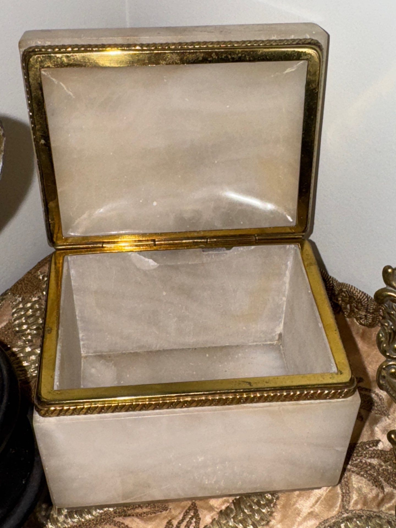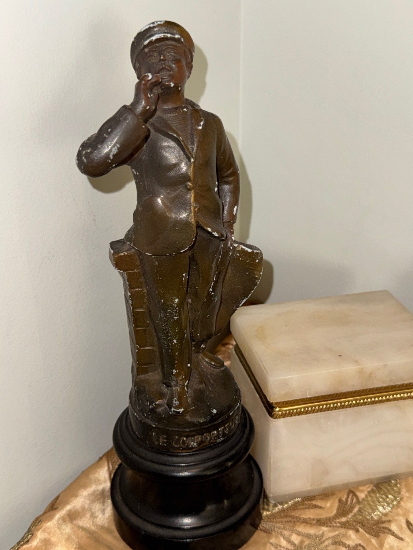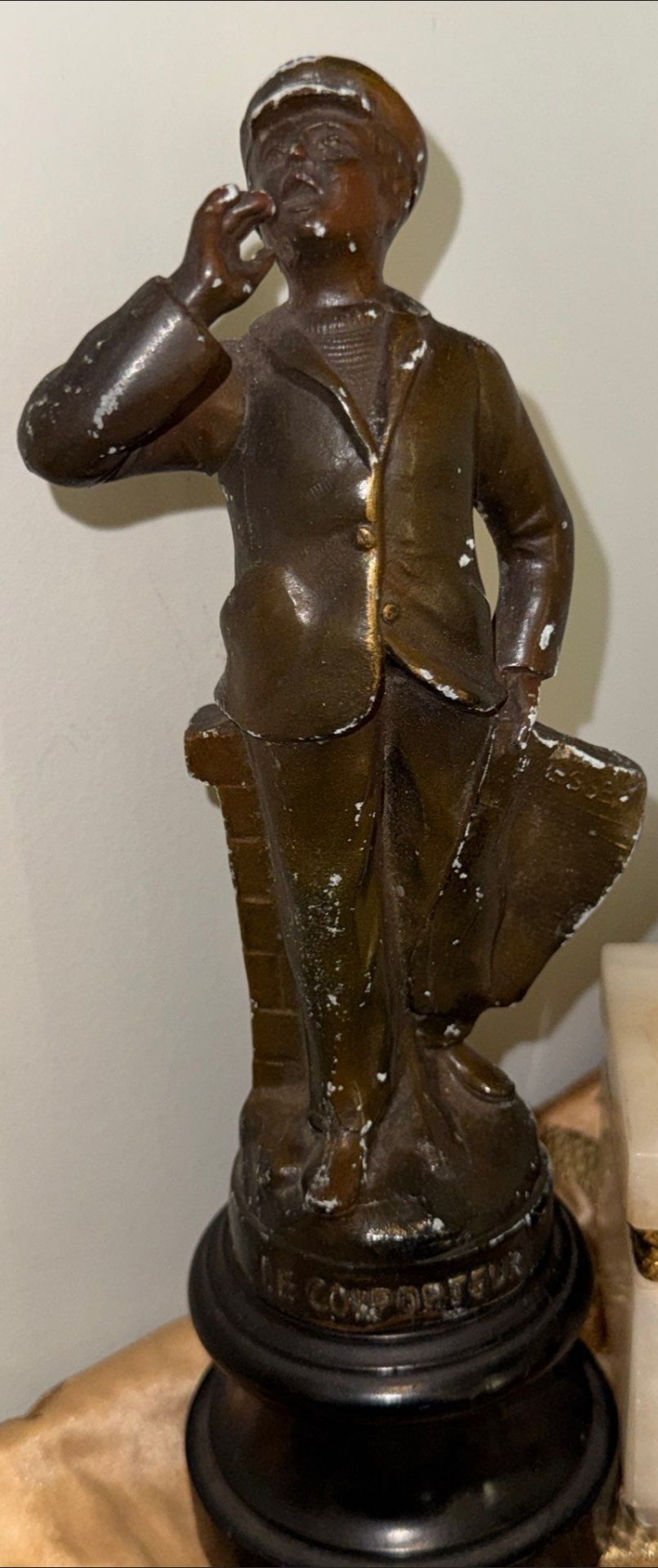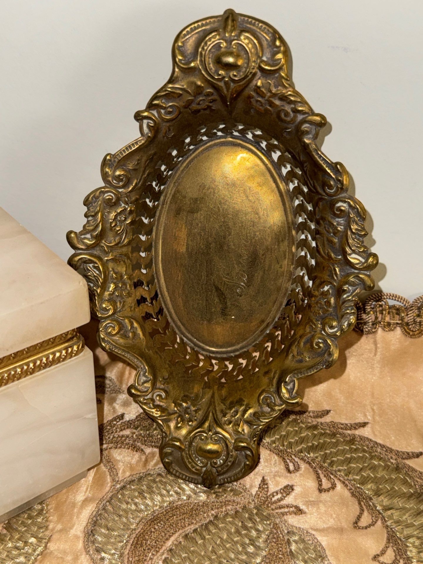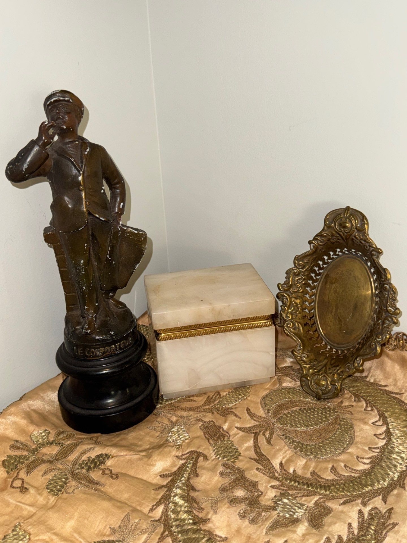 Bronze Peddler 'LE COLPORTEUR' 13T w/ Marble Jewelry Chest & Ornate Brass Metal Dish