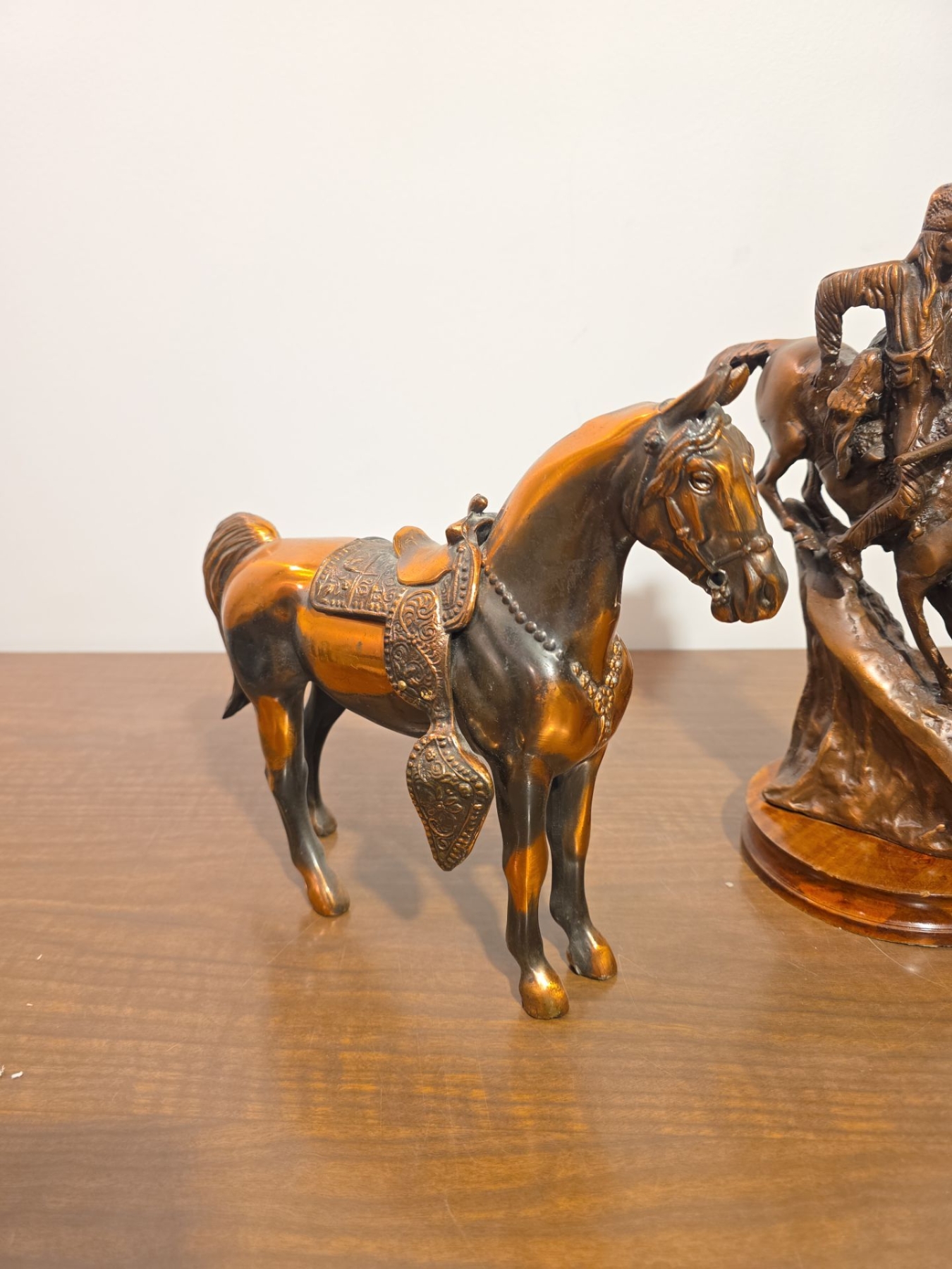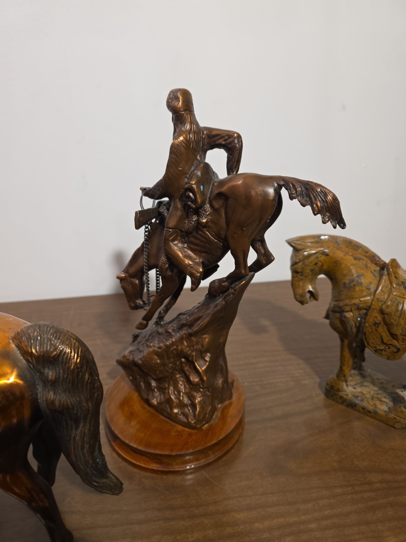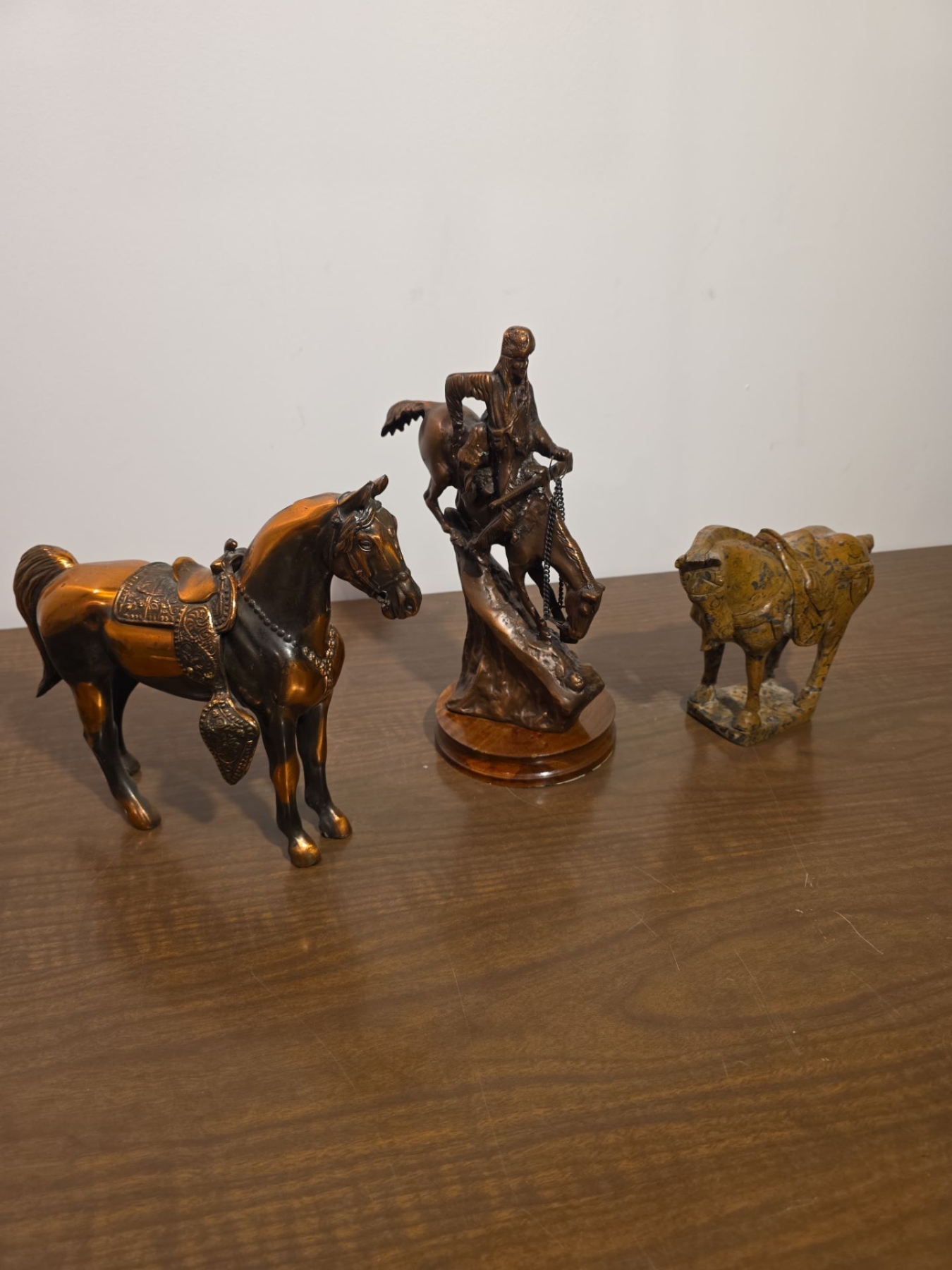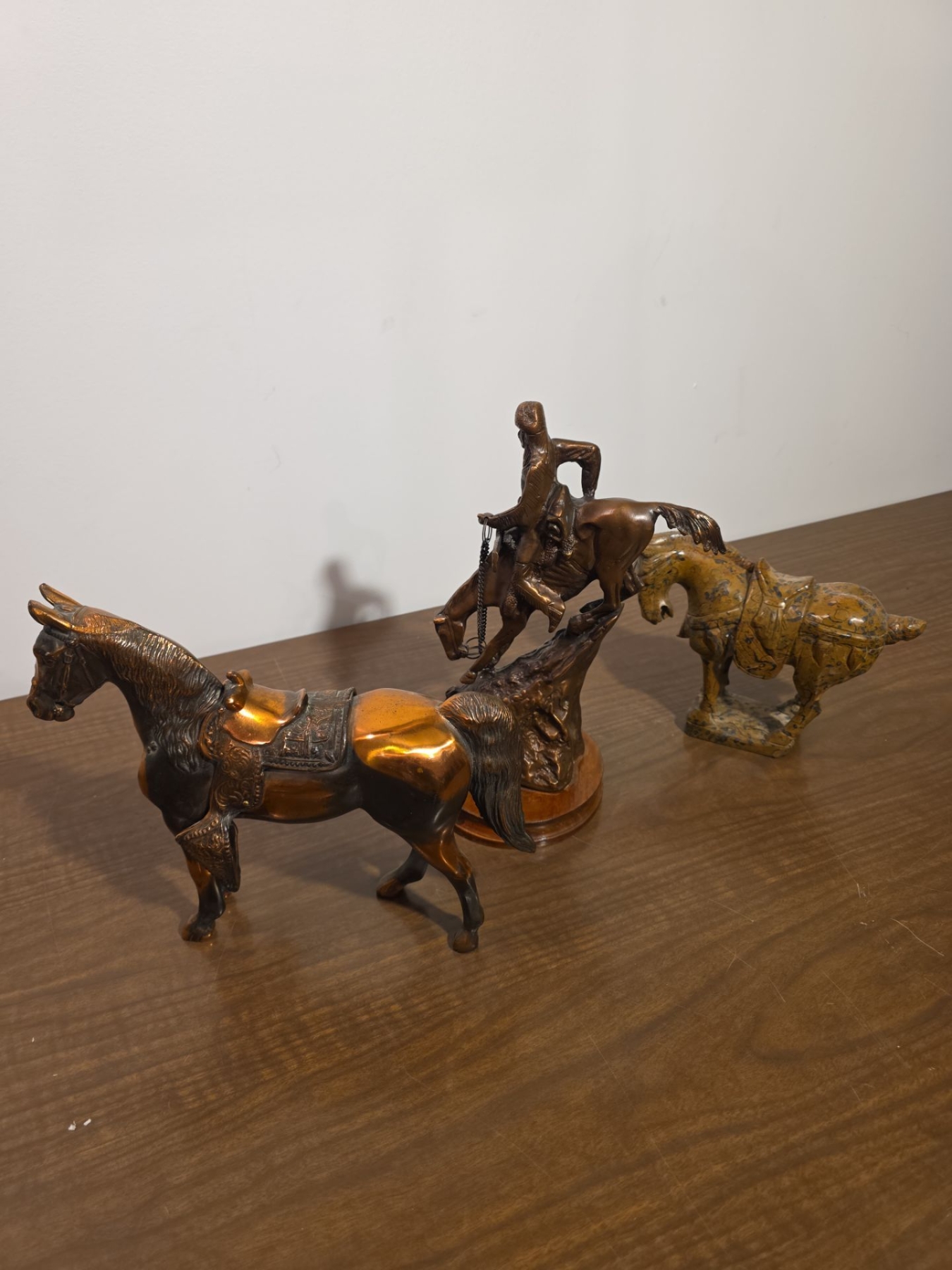 Bronze Tone & Marble Horse Statues