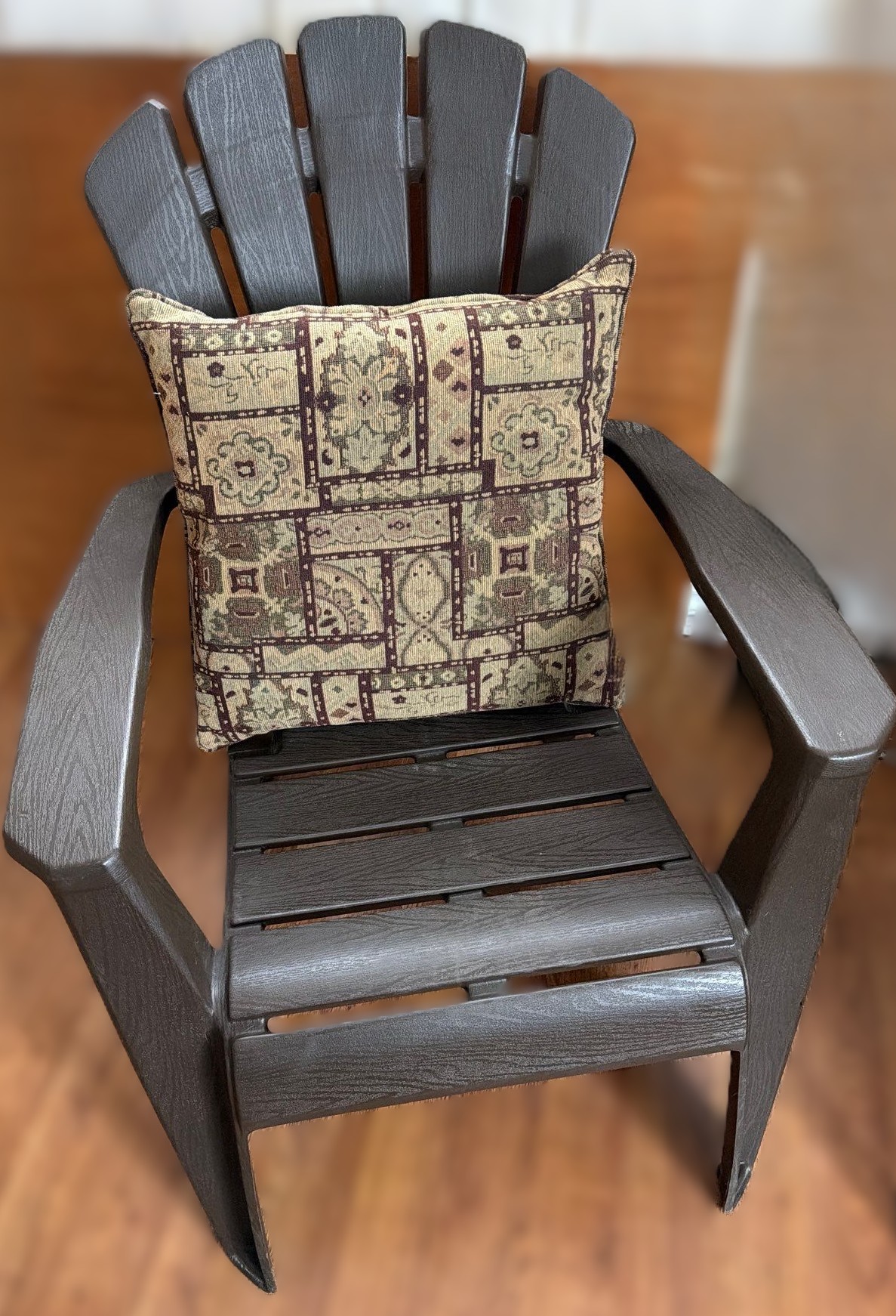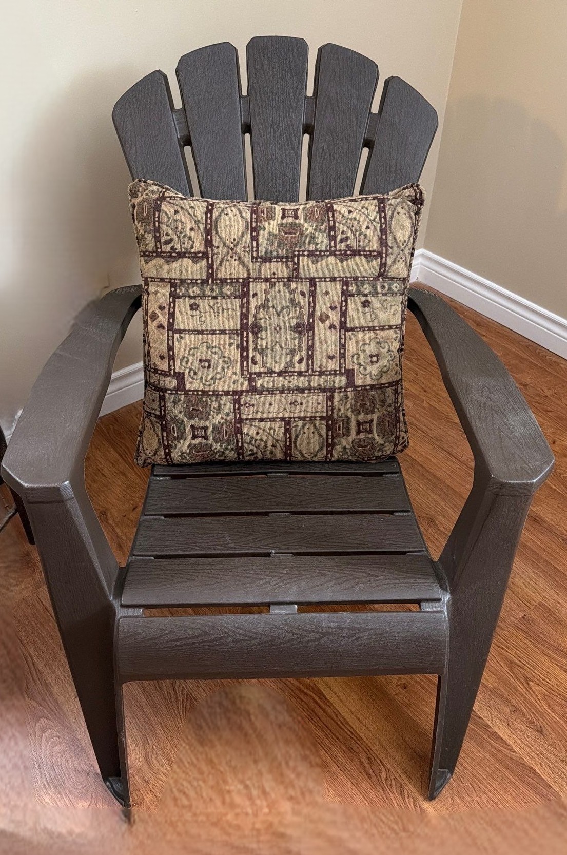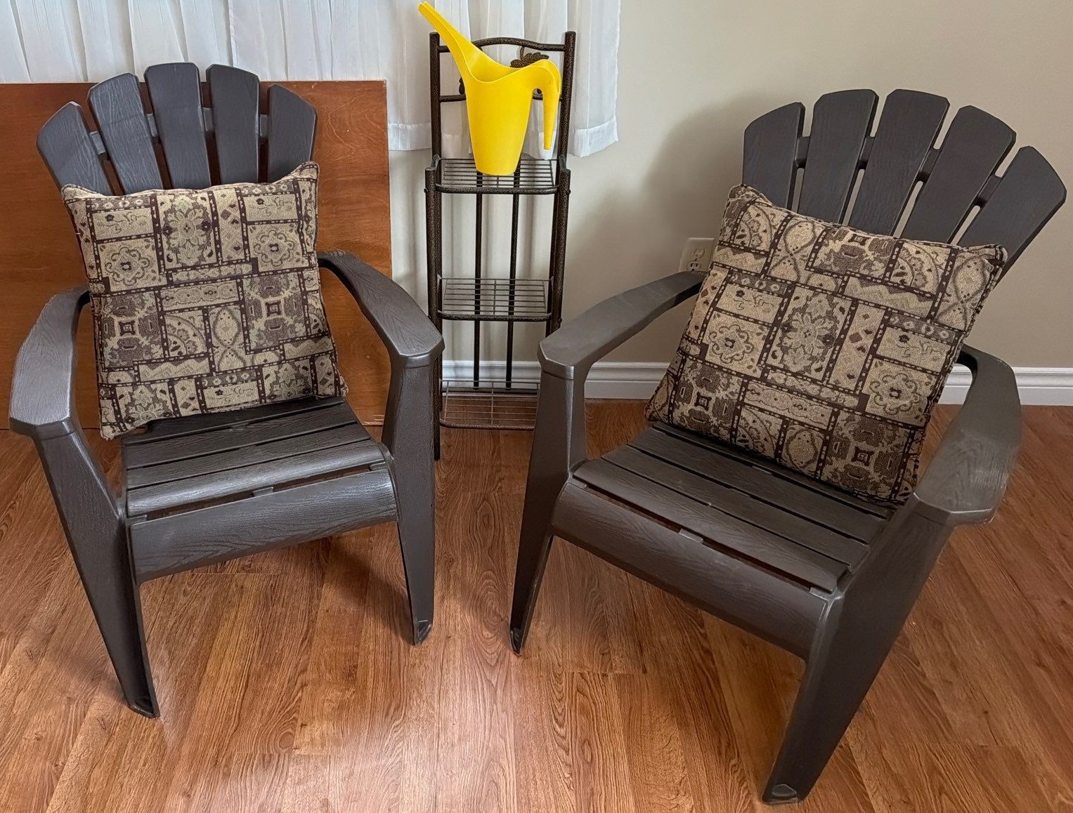 Brown Resin Muskoka Style Chairs 30 W, 35 D, 35 D and Rack 12 W, 10 D, 38 T
