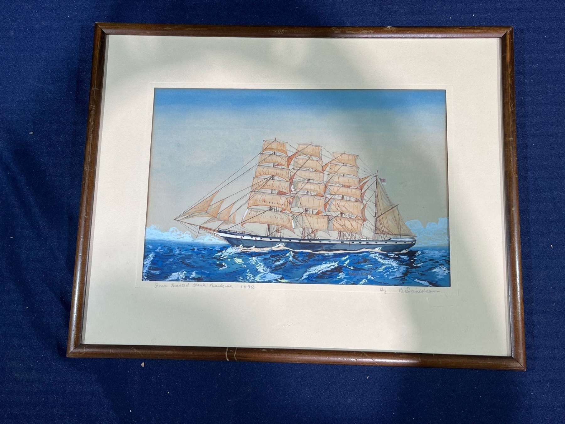 Bruce Davidson Four Mosted Steel Barque Original Watercolor 13Wx9H