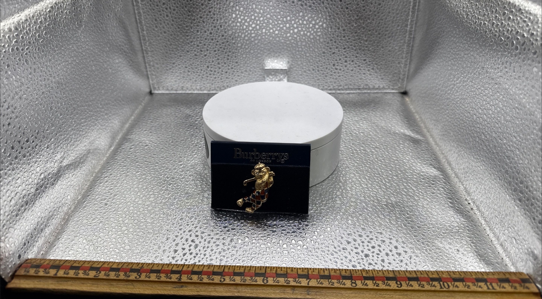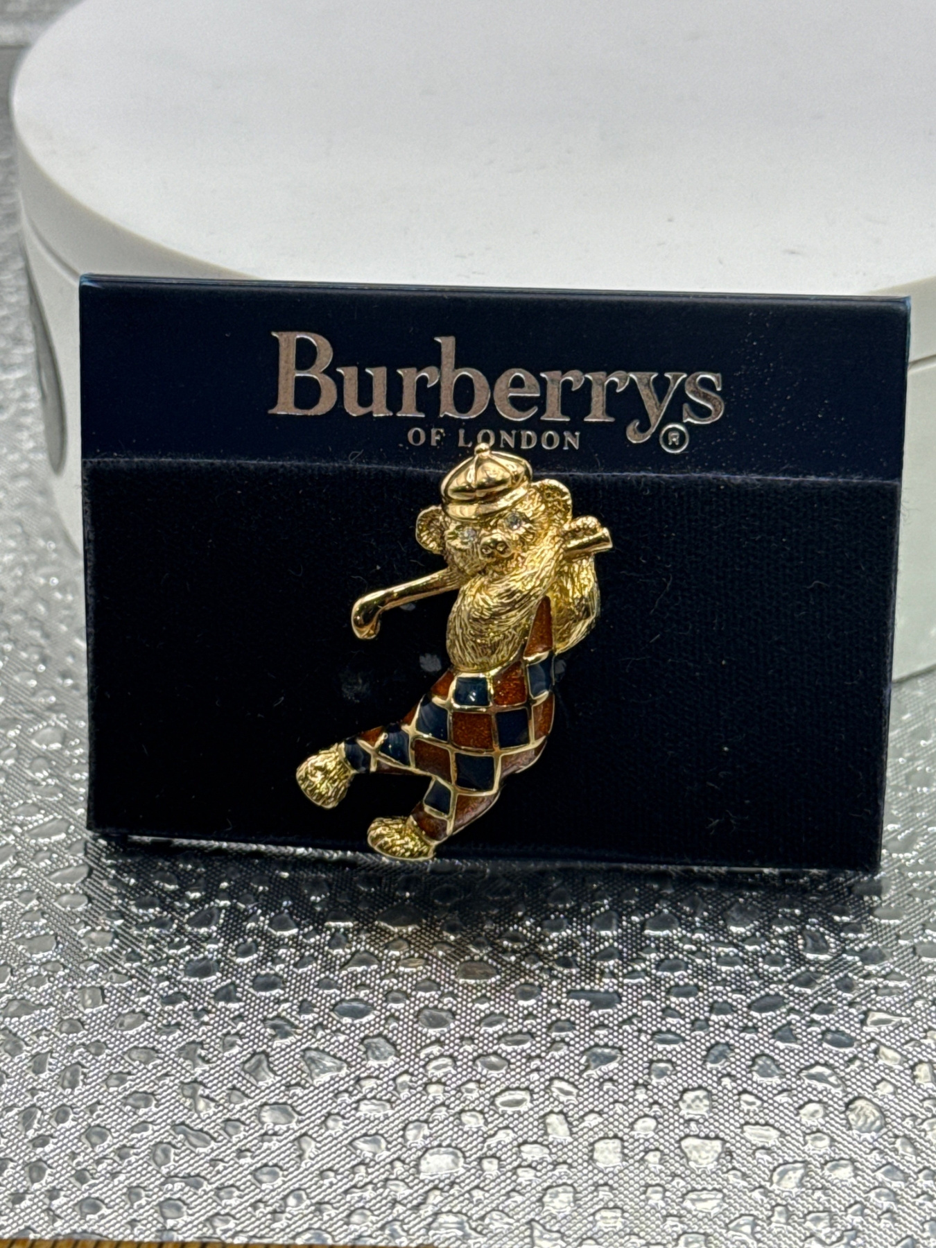 London golf teddy bear enamel broach. It is a rare find vintage authentic with signature