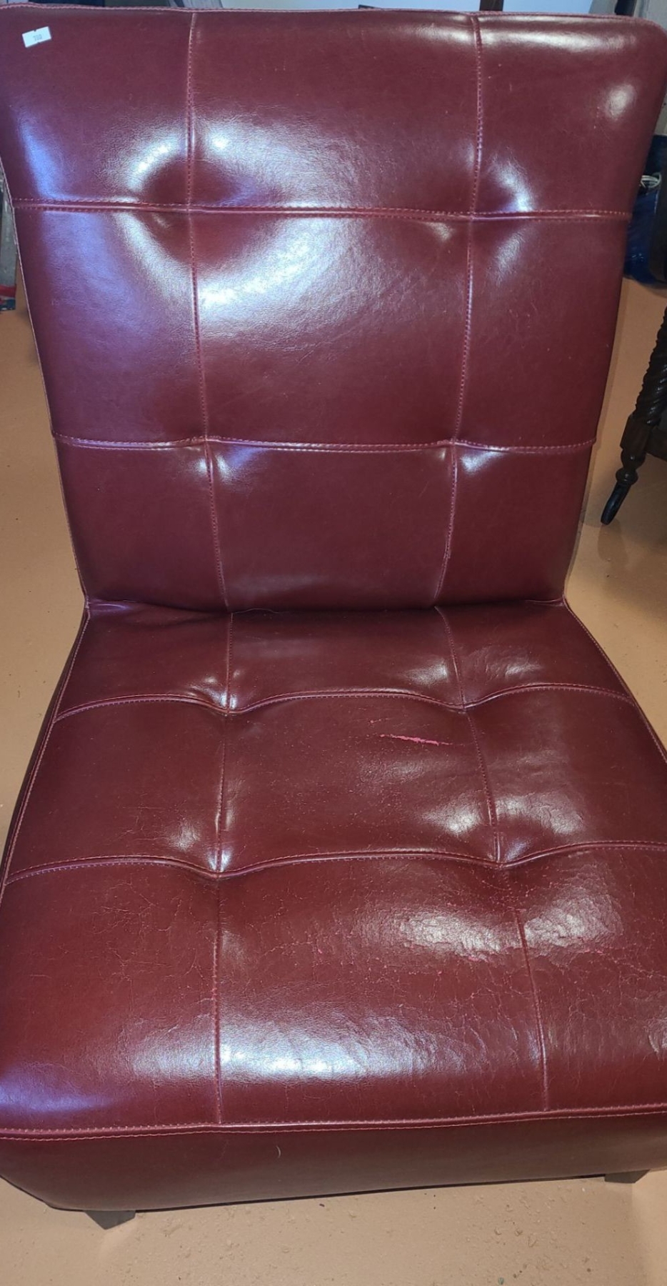 Burgundy Faux Leather Side Chair 37 T, 25 L, 25 W