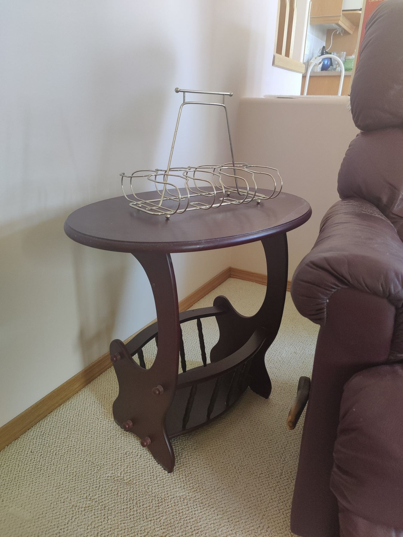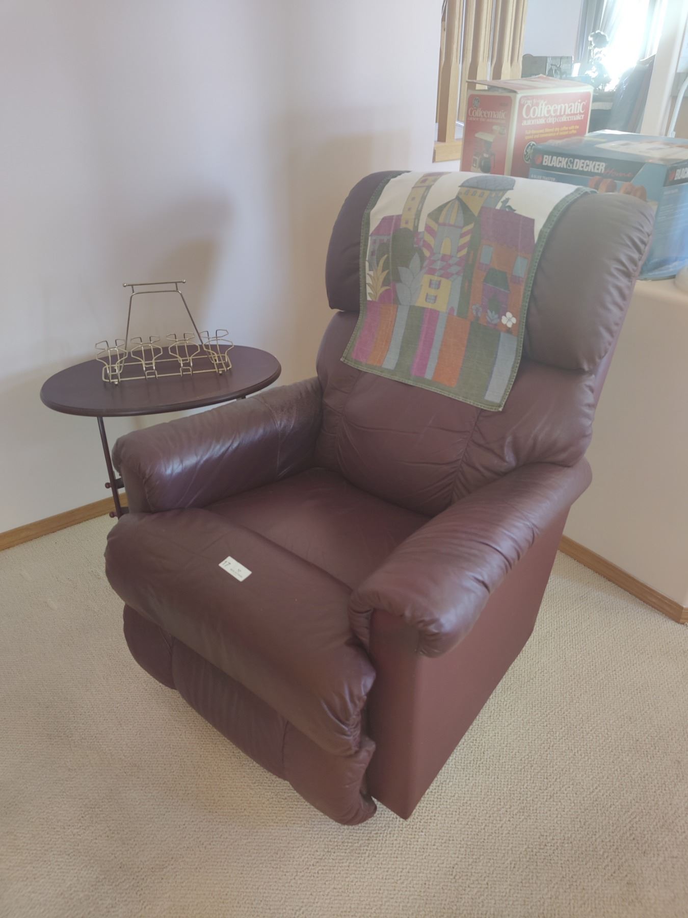 Burgundy Recliner with Side Table/Magazine Rack
