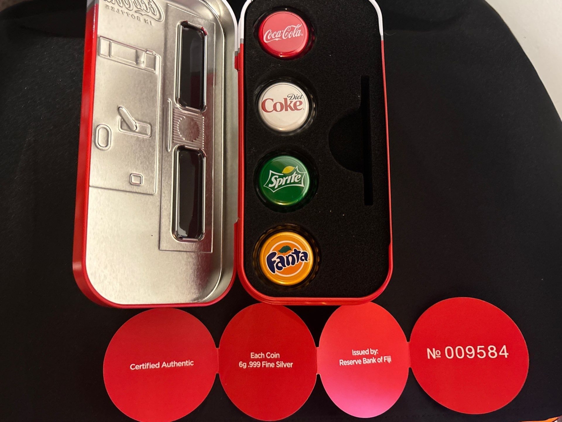 Our incredibly popular, pure silver bottle cap coins are back for 2020, and now there are FOUR DIFFERENT bottle caps to collect: Coca-Cola, Diet Coke, Sprite and Fanta Orange!