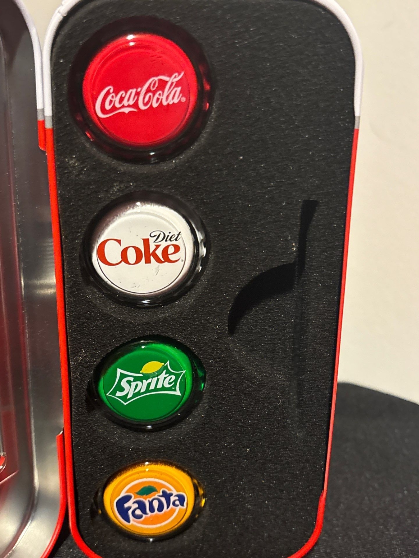 But that’s not all – ALL 4 COINS now come packaged in a keepsake tin that looks just like a vintage Coca-Cola vending machine…How cool is that?