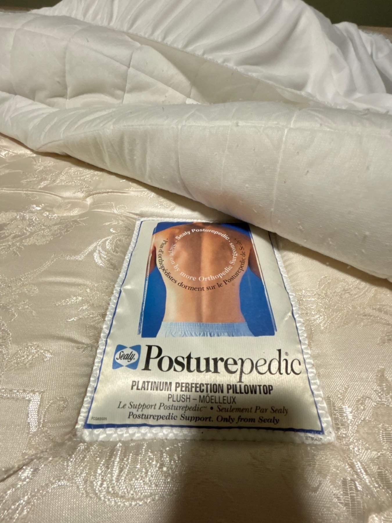 California King Size Bed and Box Spring Regular King with Frame Comes With Bedding Seen In photo Sealy Posturepedic pillow Top Only Used In The guest Room