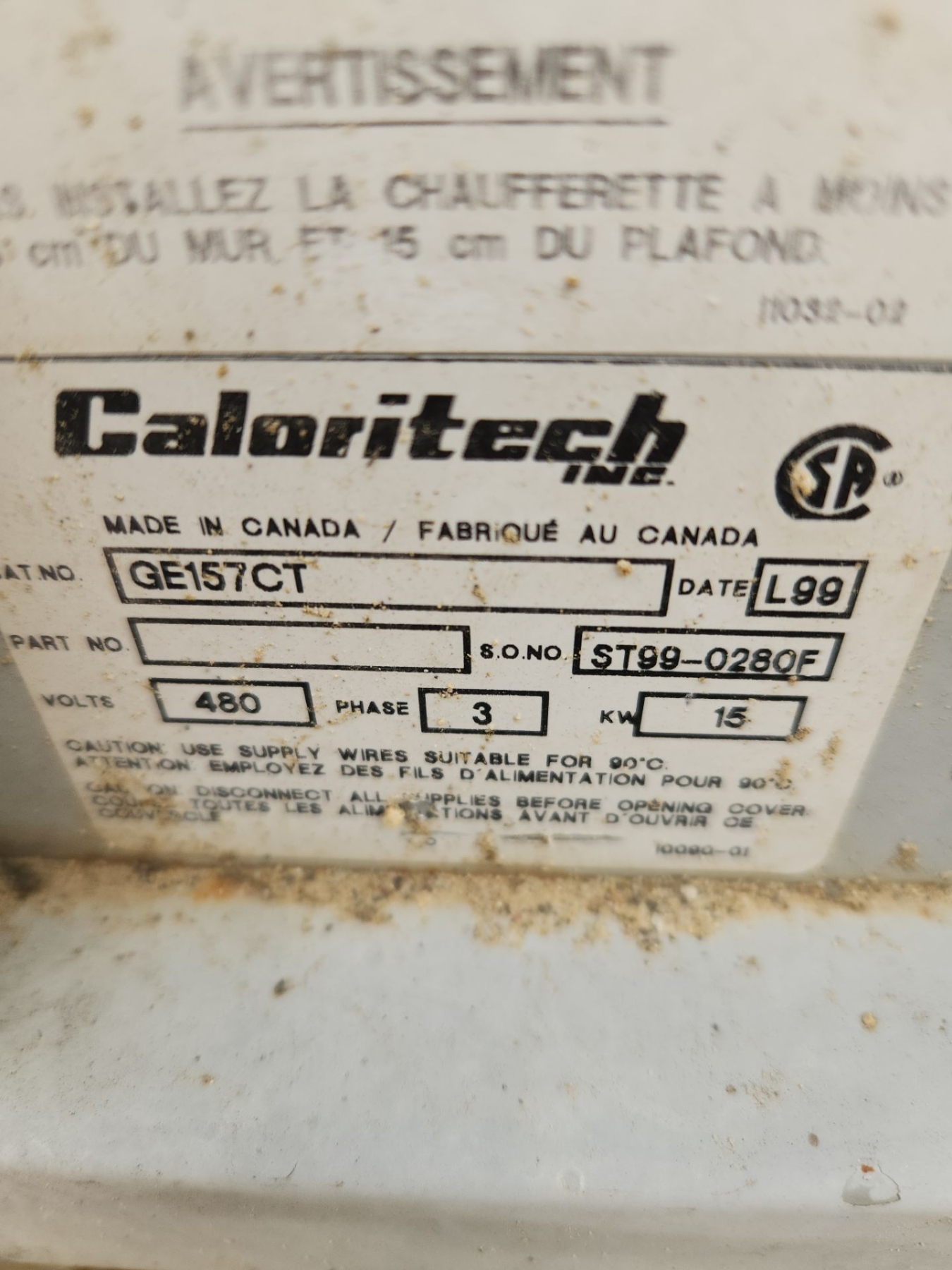 Caloritech Inc. Model GE157CT Forced Air Heater, Bring Assistance to Move