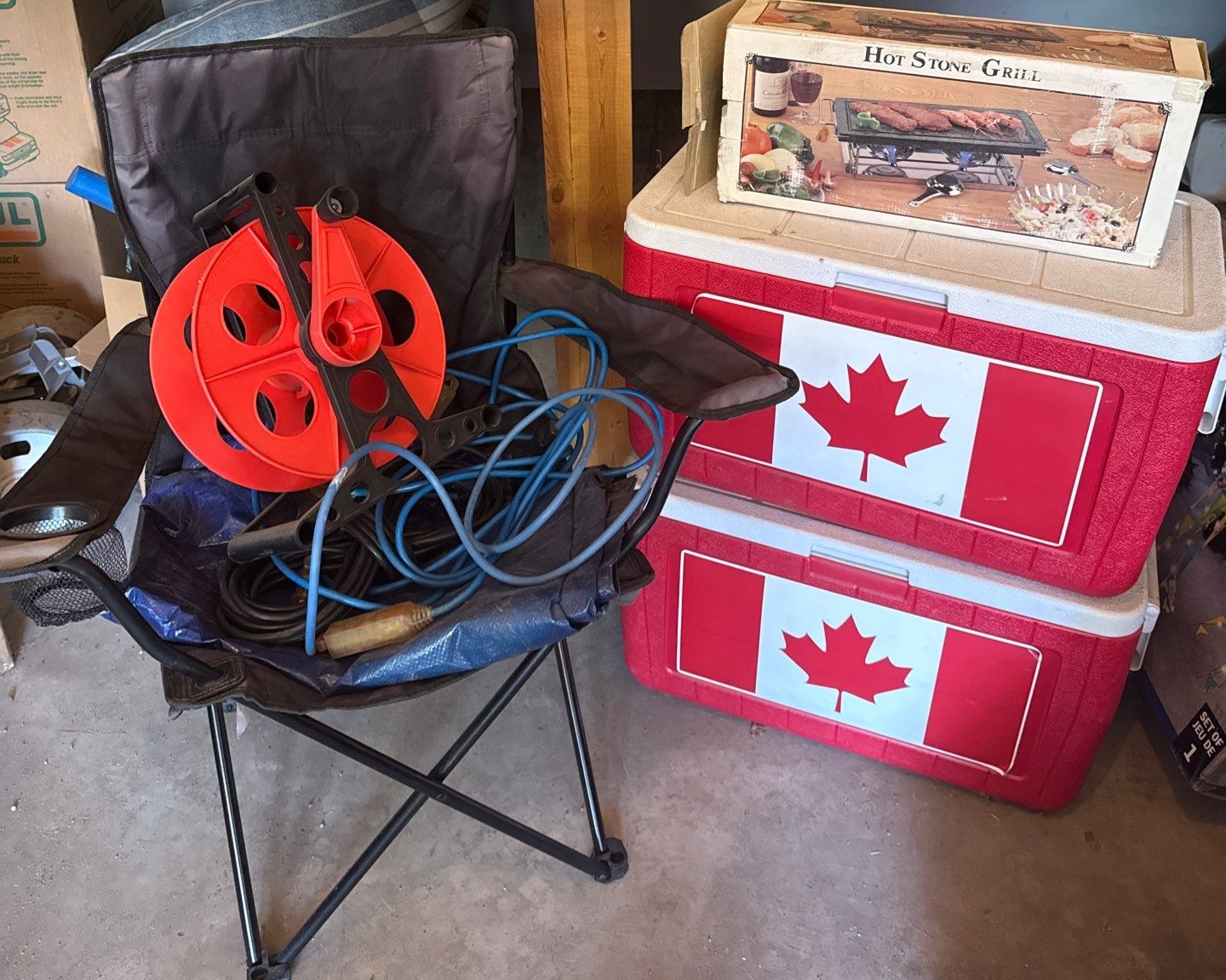Camping Essentials - 2 Coleman Coolers Folding Camp Chair Hot Stone Grill & More