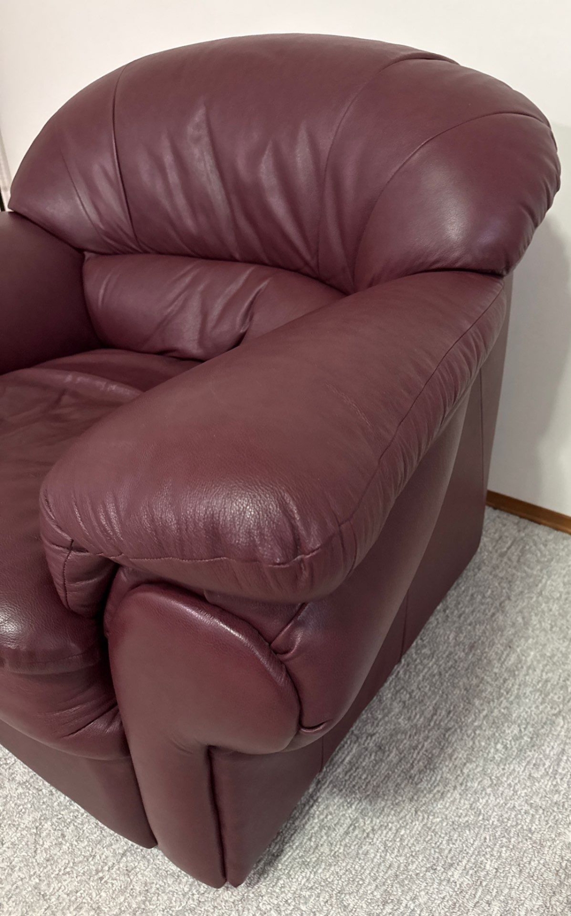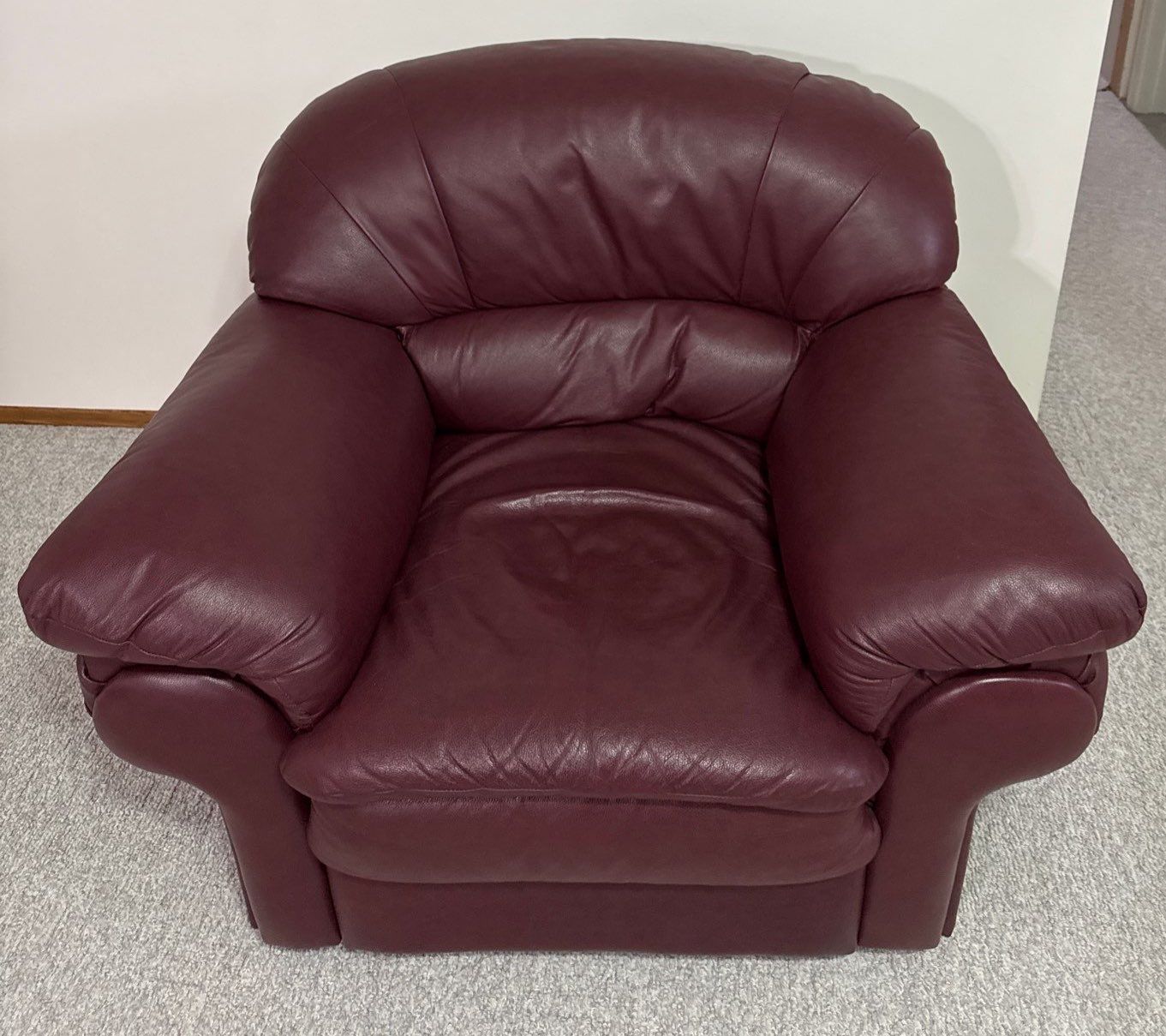 Campio Furniture, Made in Canada, Leather Burgundy Single Couch in Great Condition - 43W, 35D, 34T