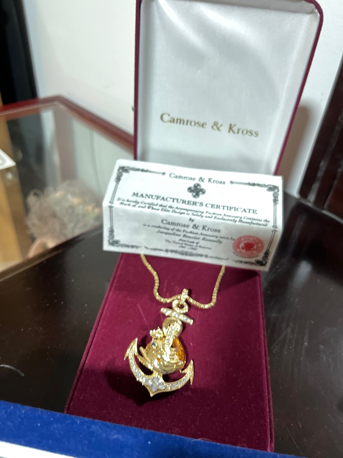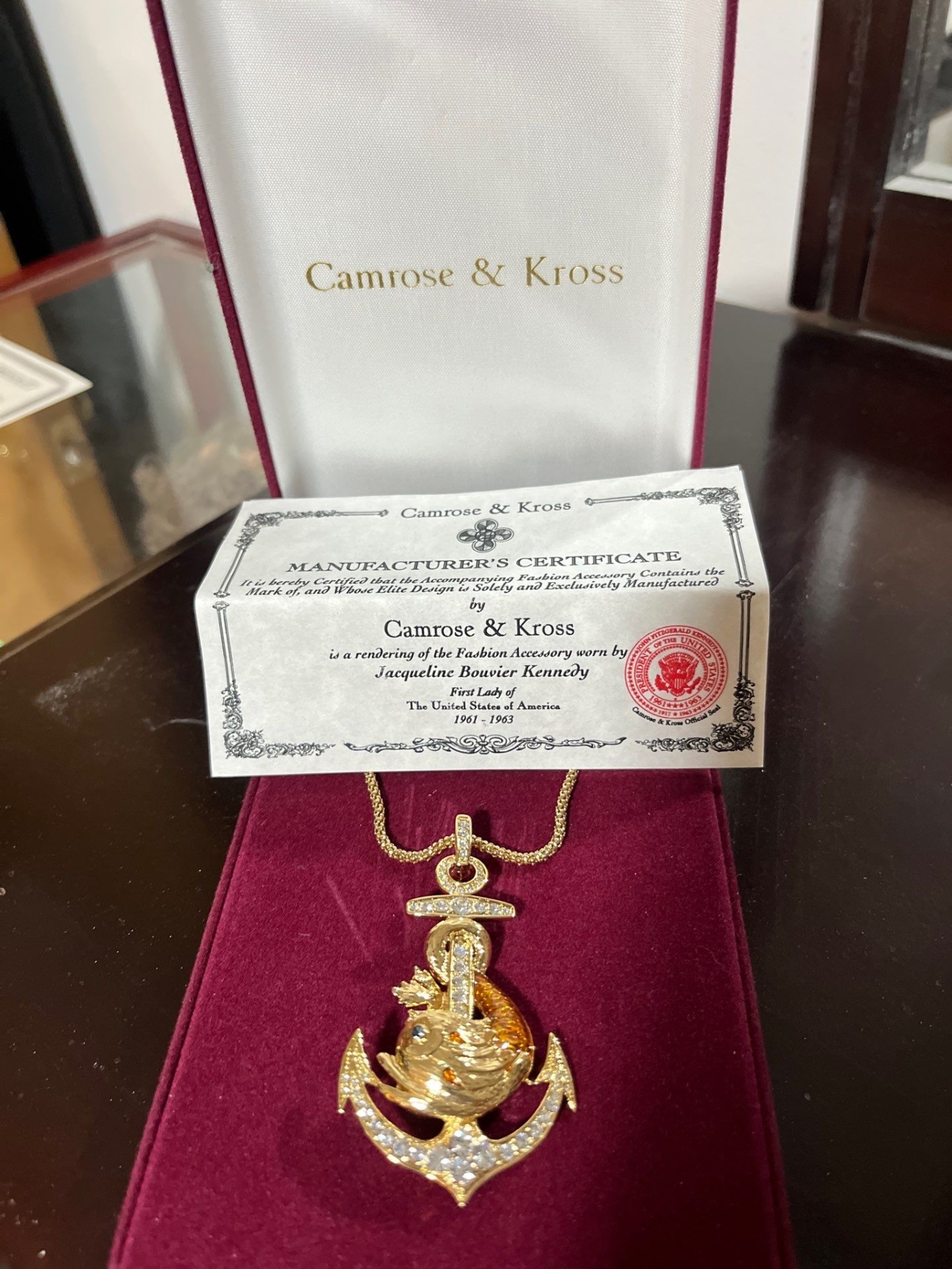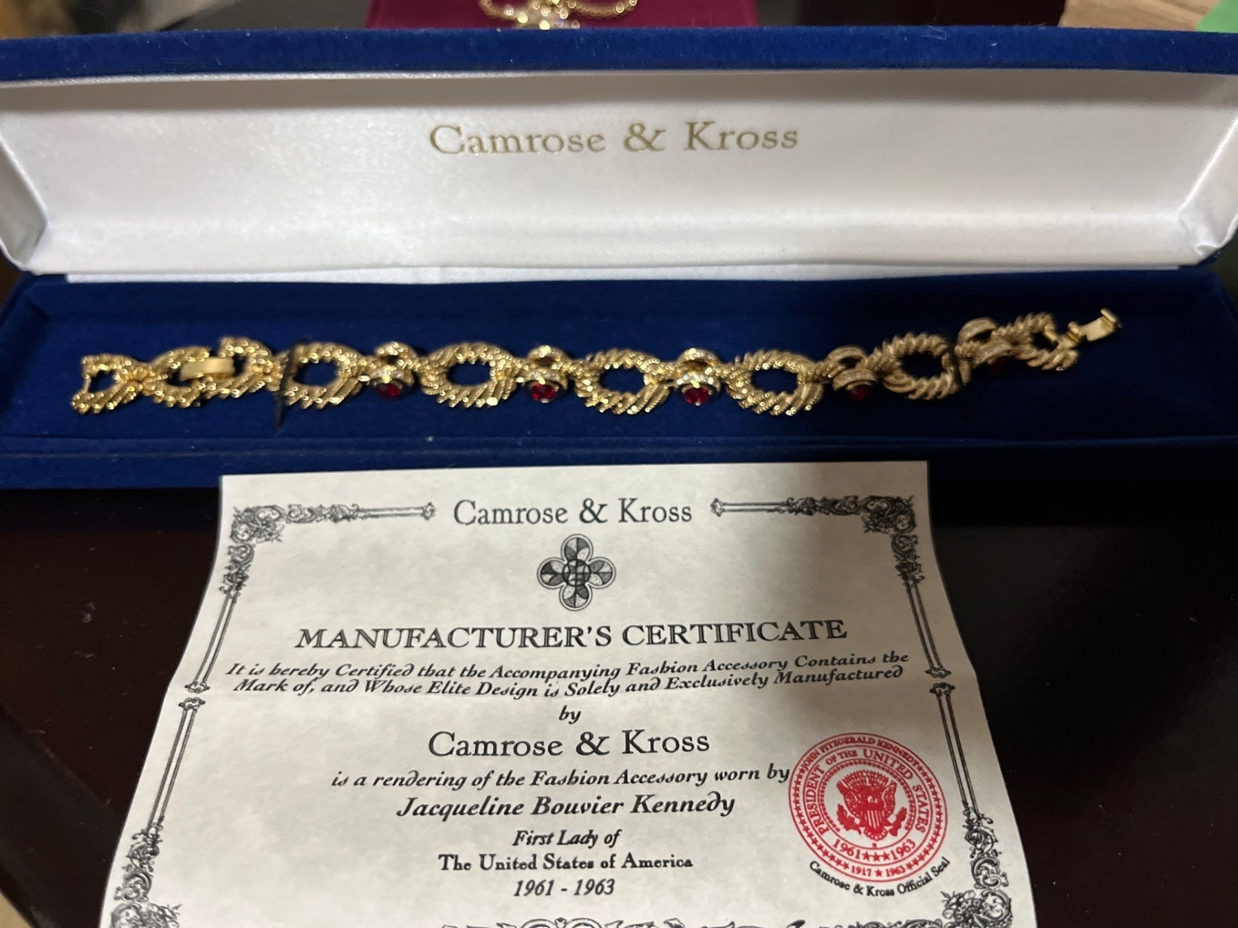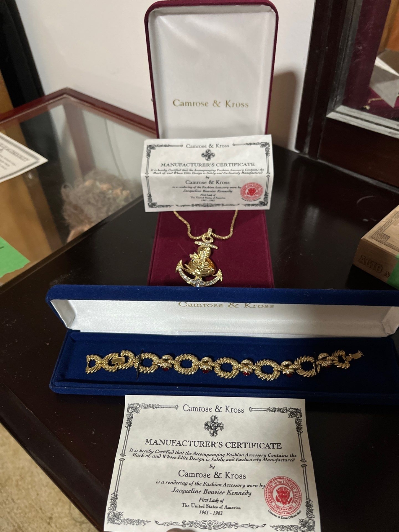 Camrose and Kross Bracelet and Necklace, Attached With the Manufacture Certificate Is A Rendering of The Fashion Accessories Worn By Jacqueline Kennedy First Lady of the United States of America 1961 to 1963.