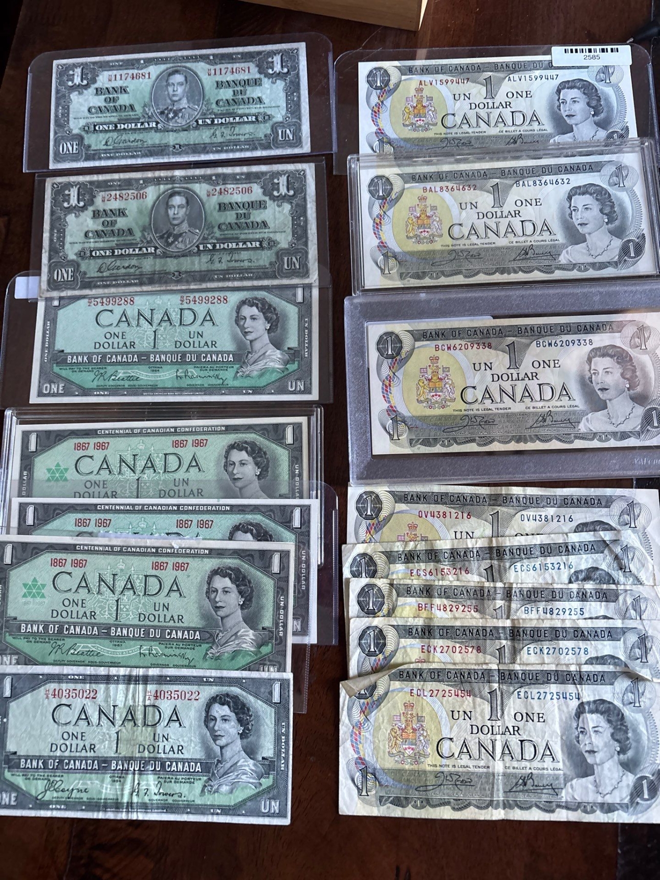Canadian 1$ Bill Collection From 1937-1973 Including Devils Face 1954