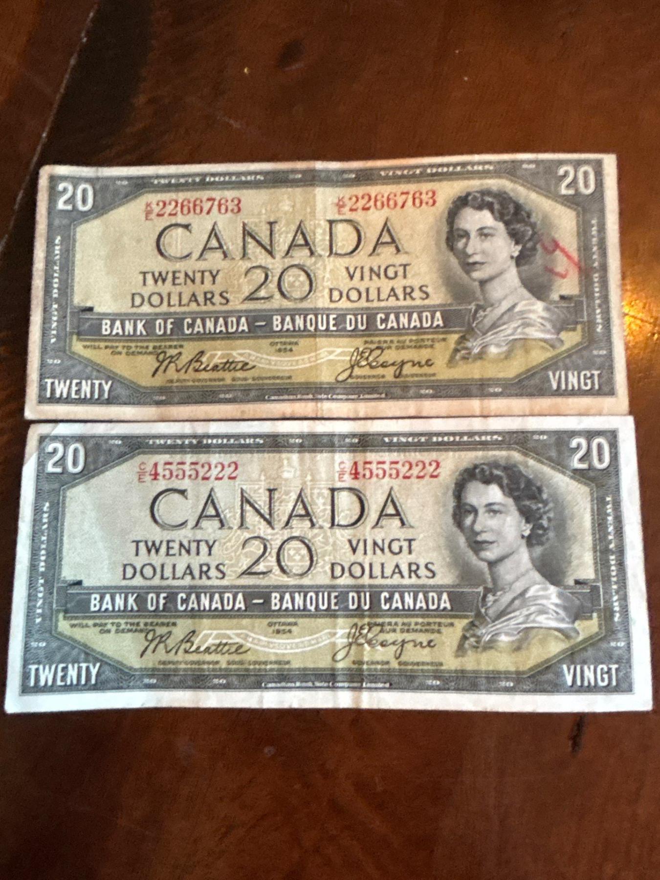 Canadian 20$ Banknotes X 2 From 1954 1 With Devils Face