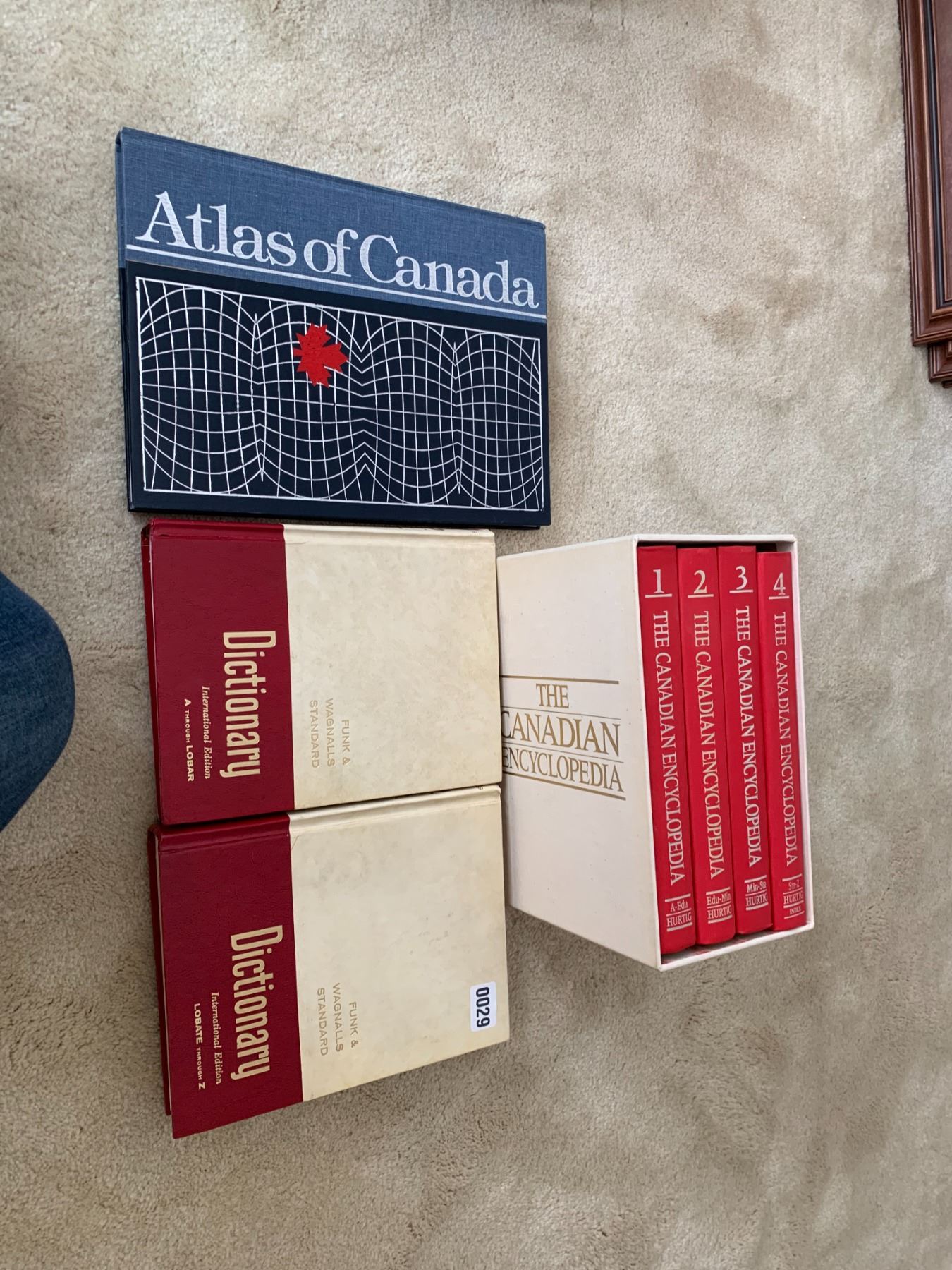 Set of Canadian Encyclopedias, Atlas of Canada, and set of dictionaries.