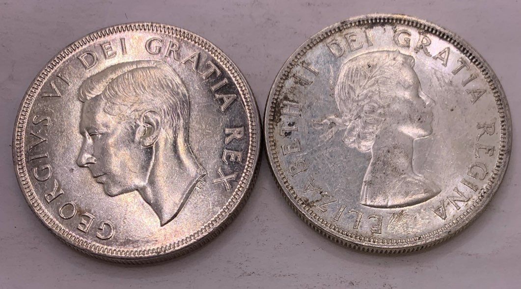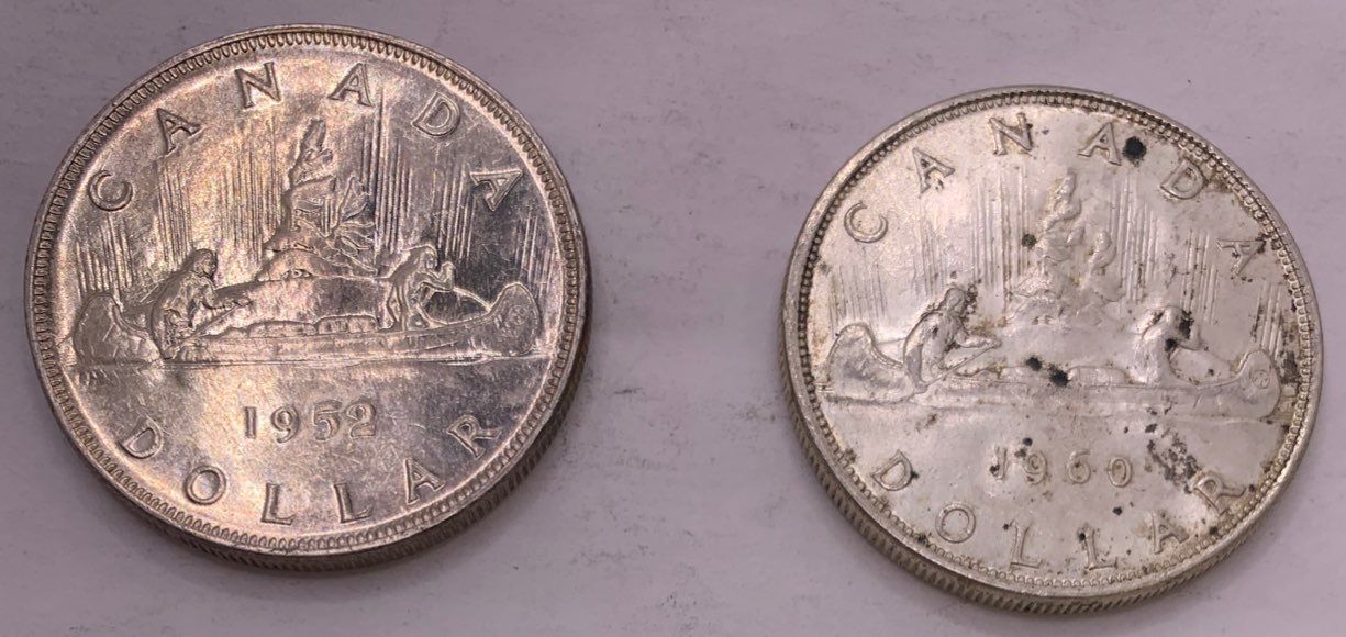 Canadian Silver Dollar 1952 (80% Pure Ag) 23.4g & Canadian Silver Dollar 1960 23.1g (80% Pure Ag)