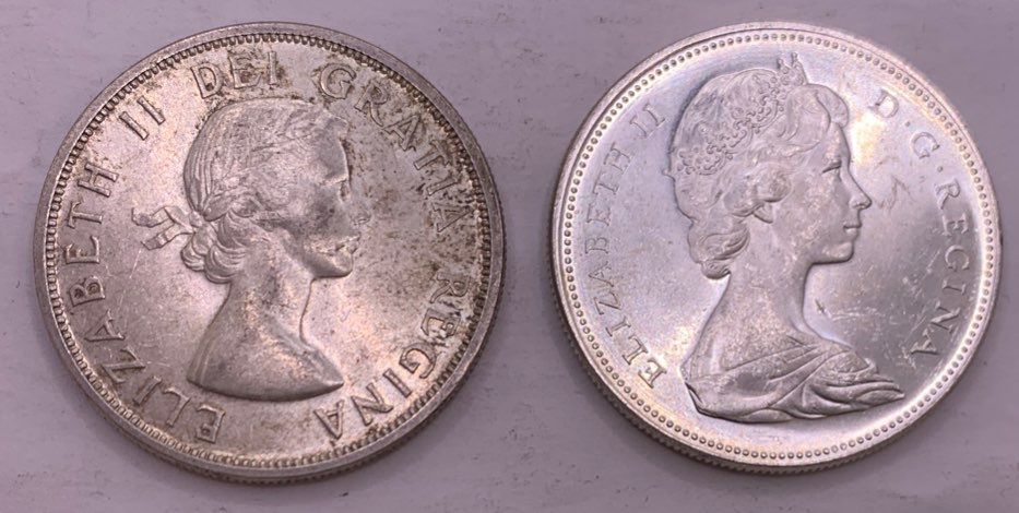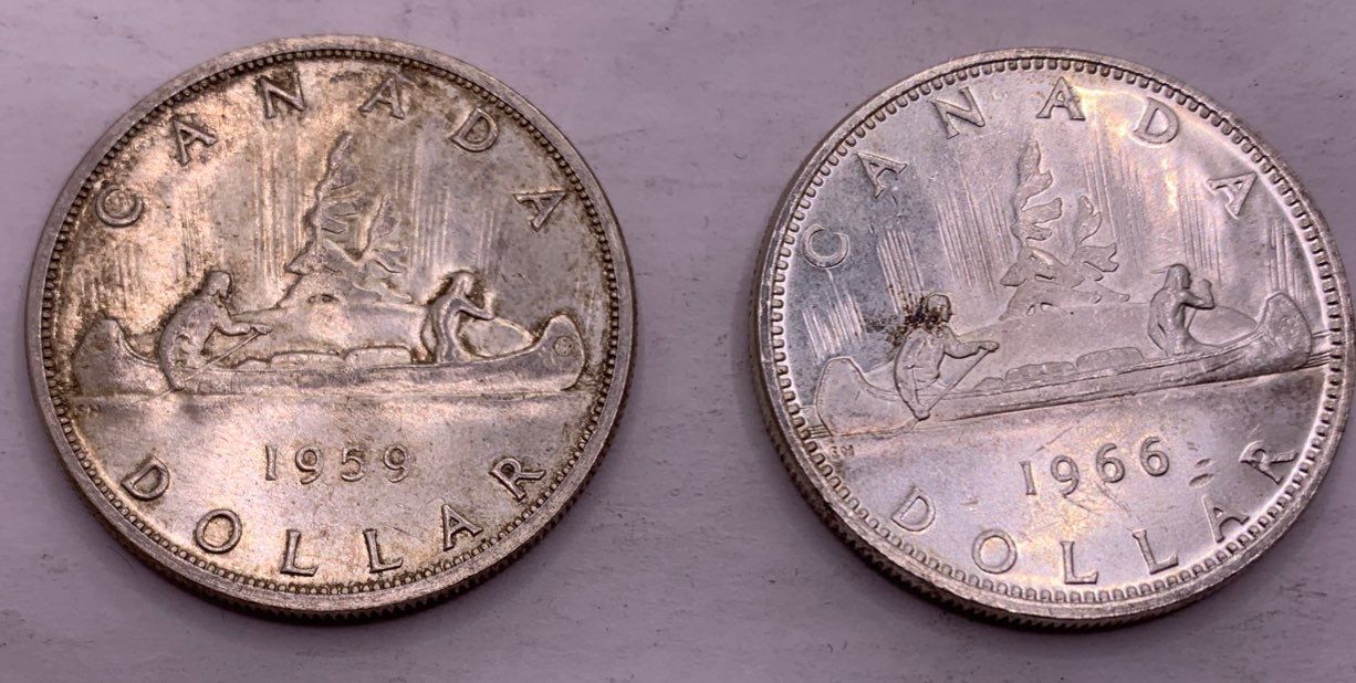 Canadian Silver Dollar 1966 (80% Pure Ag) 23.1g & Canadian Silver Dollar 1959 23.1g (80% Pure Ag)