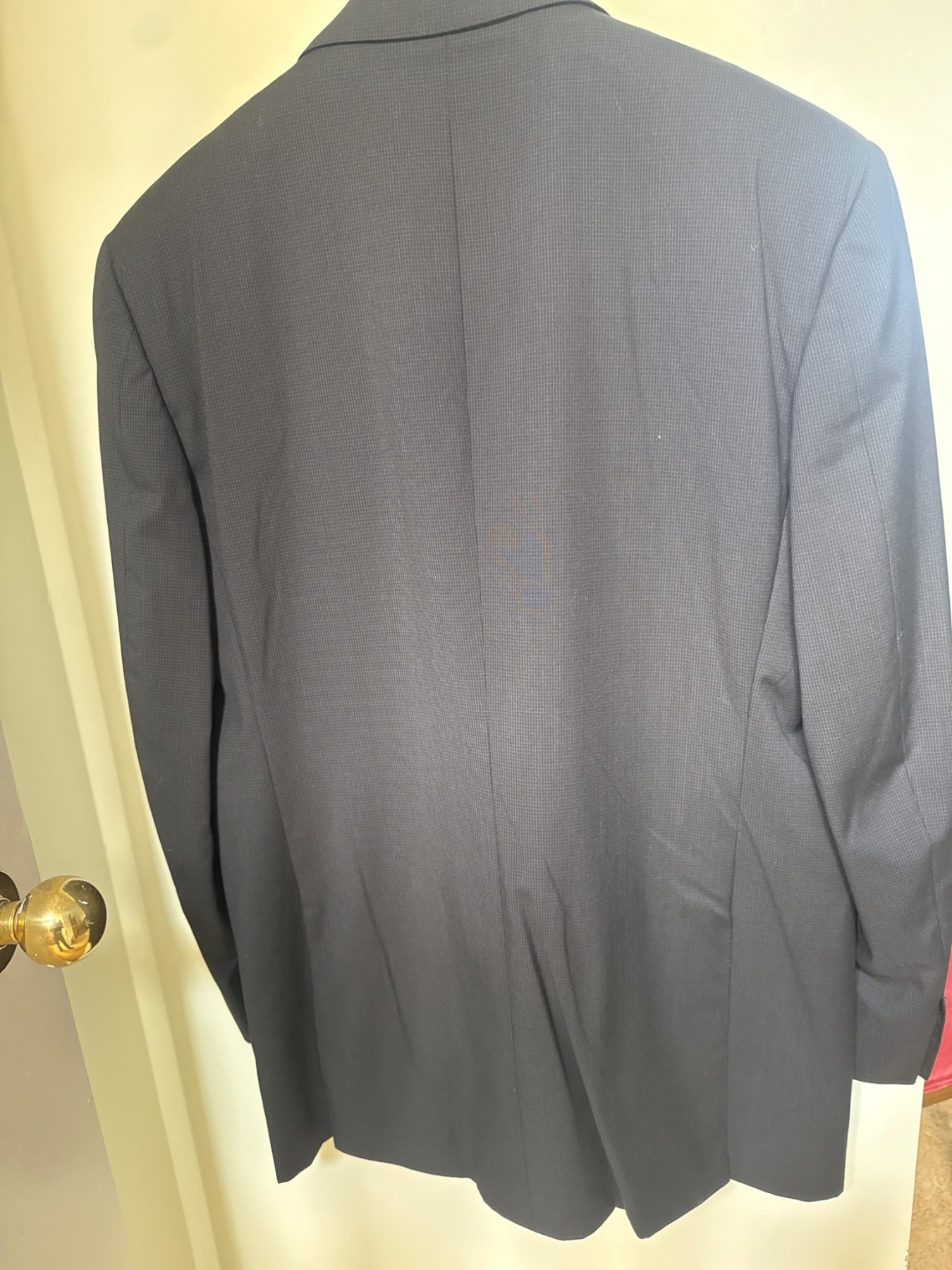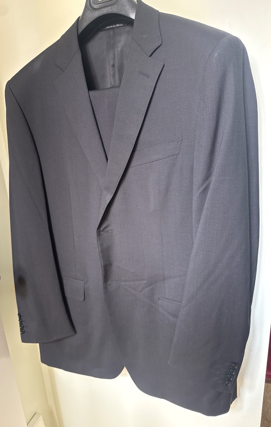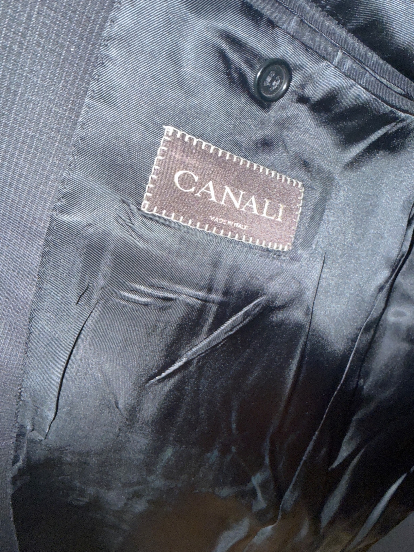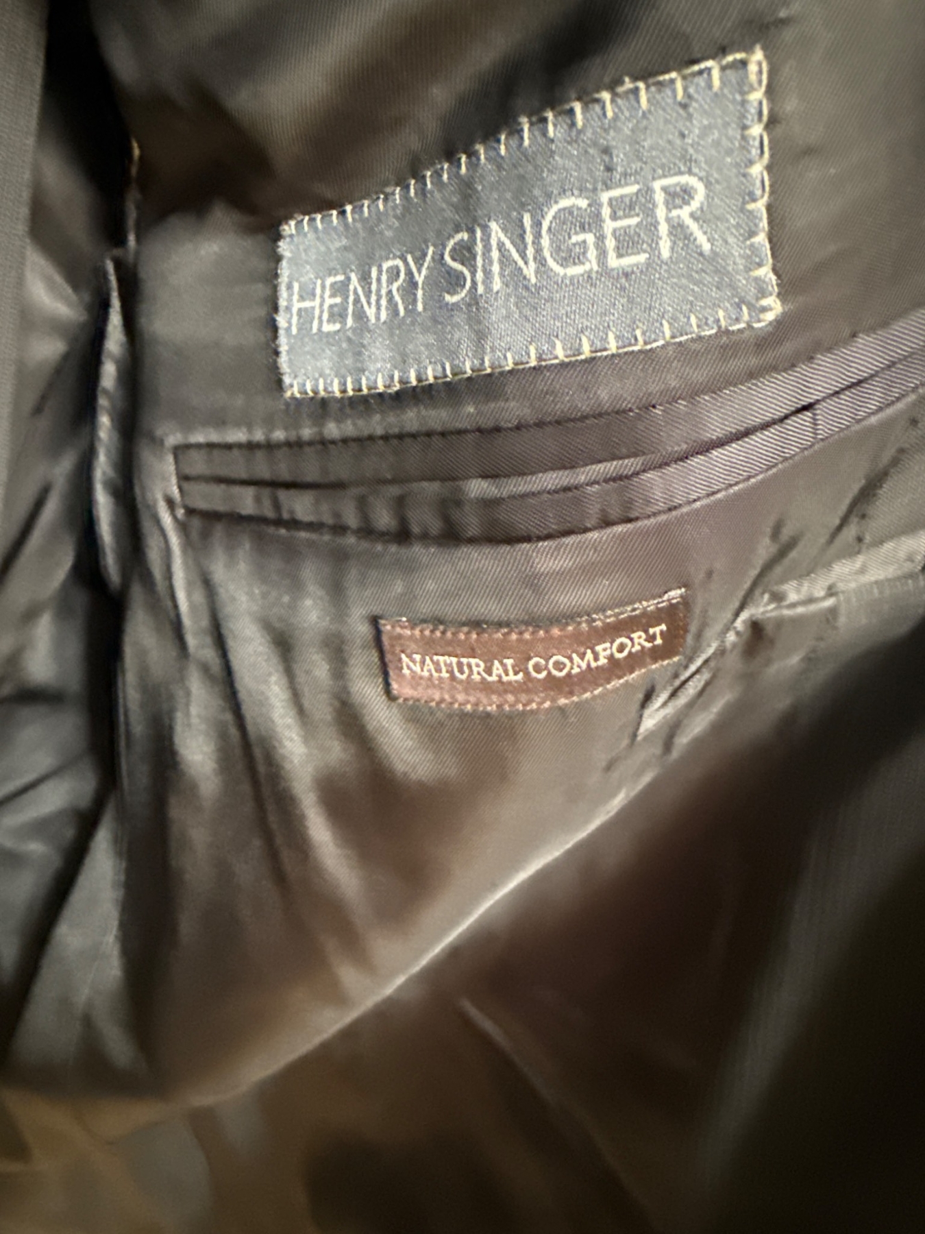 Canali men's suit jacket in dark gray, tailored in collaboration with Henry Singer and featuring the Natural Comfort label. Made from quality materials, it offers sophistication and comfort. This jacket is fully lined and features elegant lapels, multiple interior pockets, and a double vent in the rear for a nice fit. 42 tall