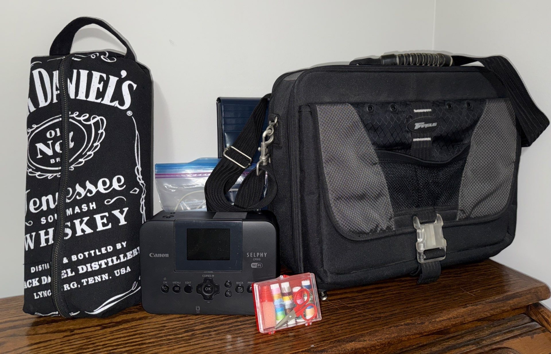 Canon Selphy CP-910 Camera, Laptop Bag, & Jack Daniels Carrying Bag w/Merch