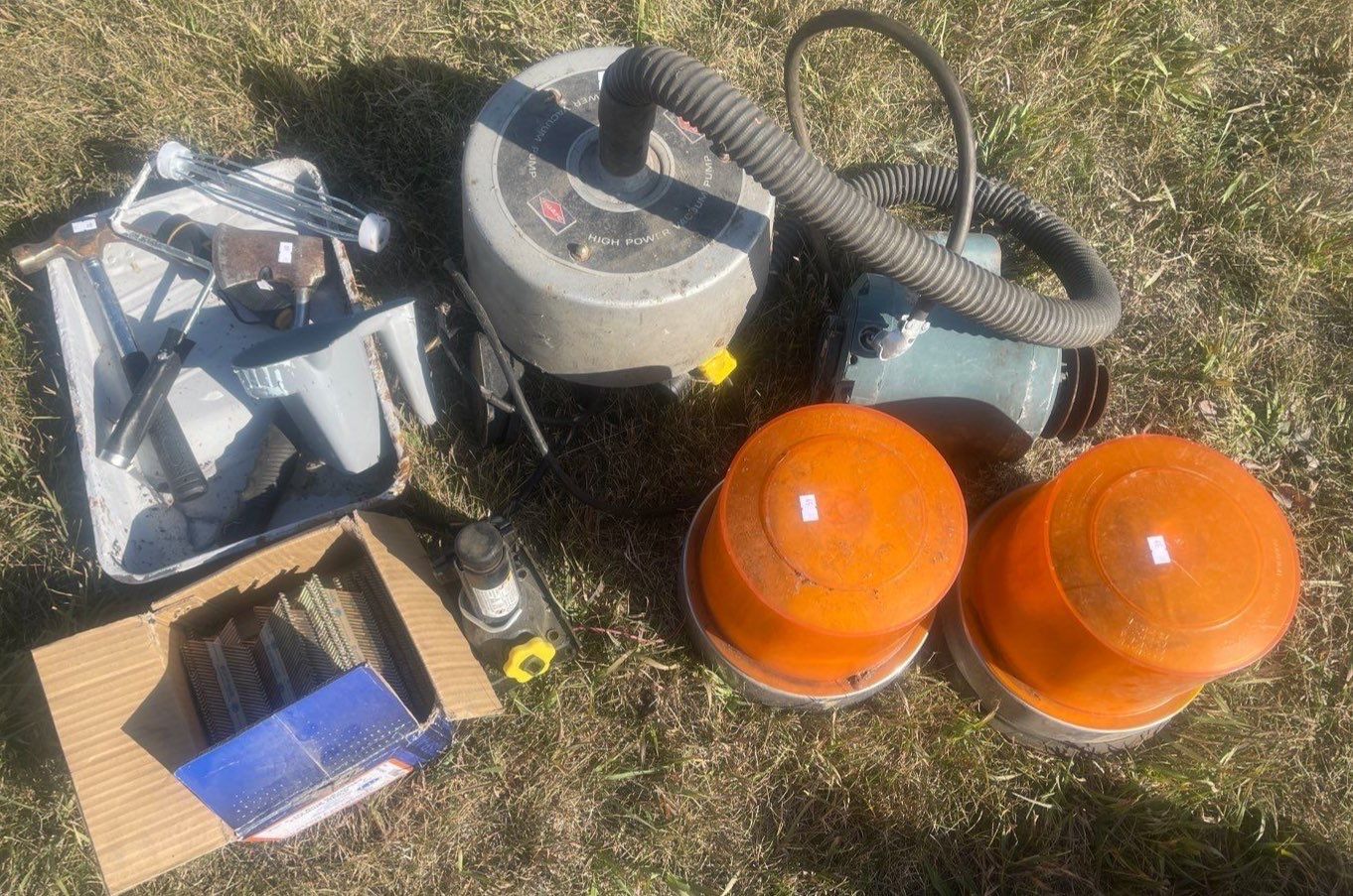 Car Jack, Orange Reflective Trailer Lights, High Powered Vacuum & Pump
