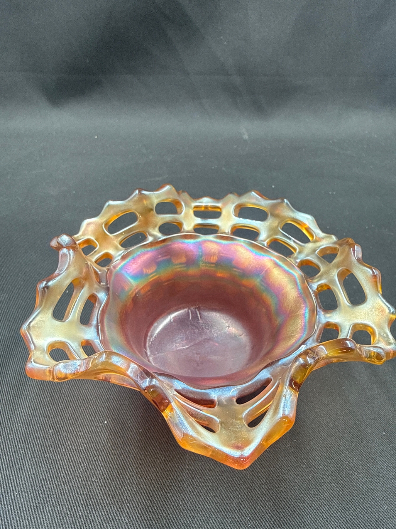 Carnival Glass Bowl Pierced Rim 5.5 W