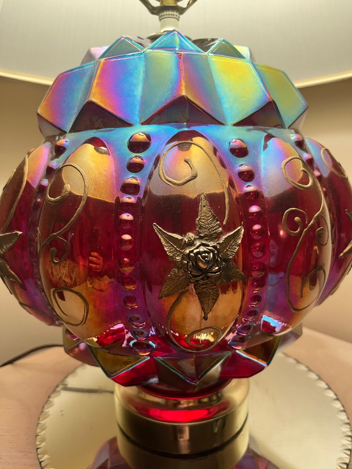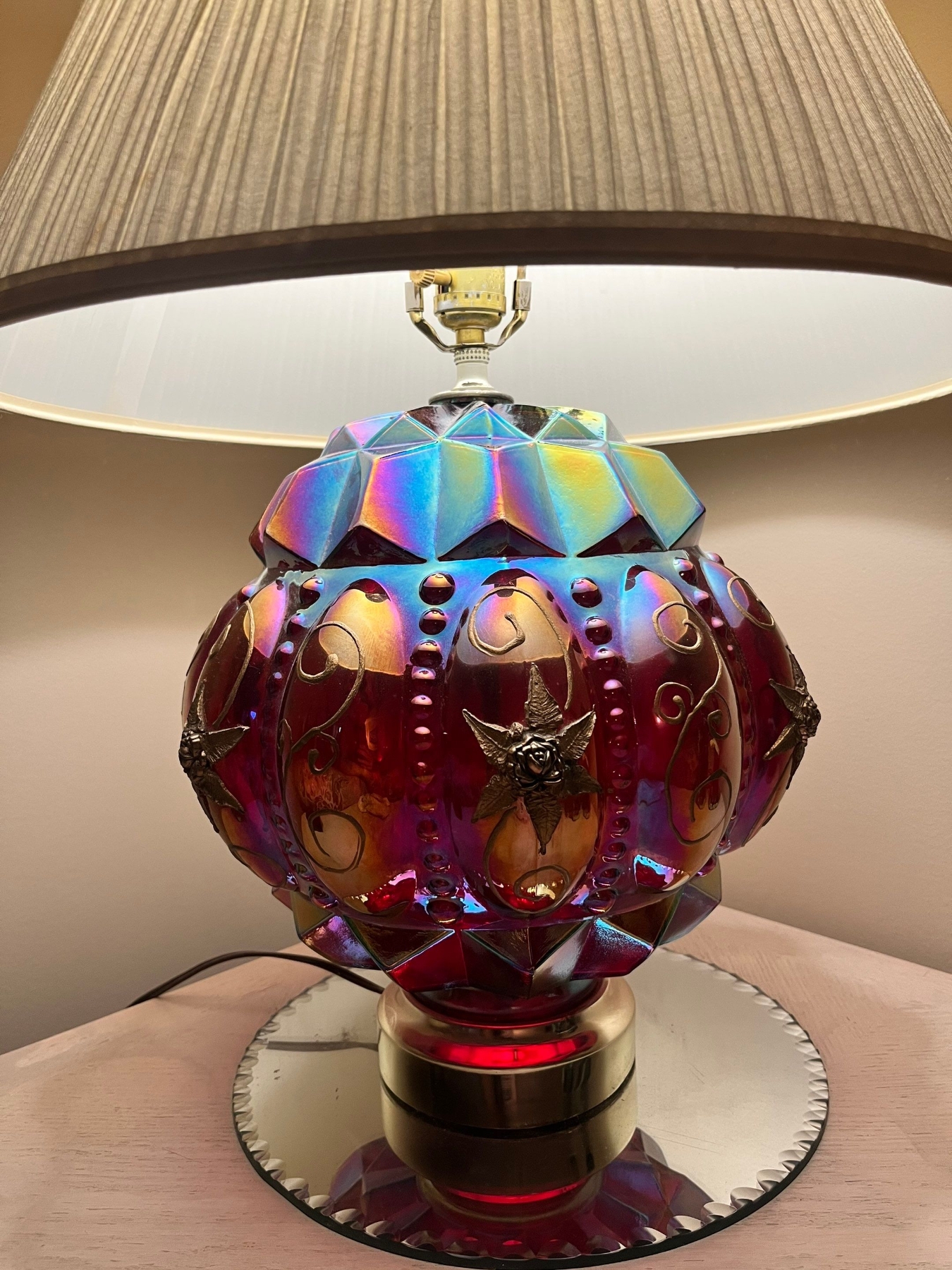 Carnival Glass Table lamp In Marigold Iridescent Glass 3 Way