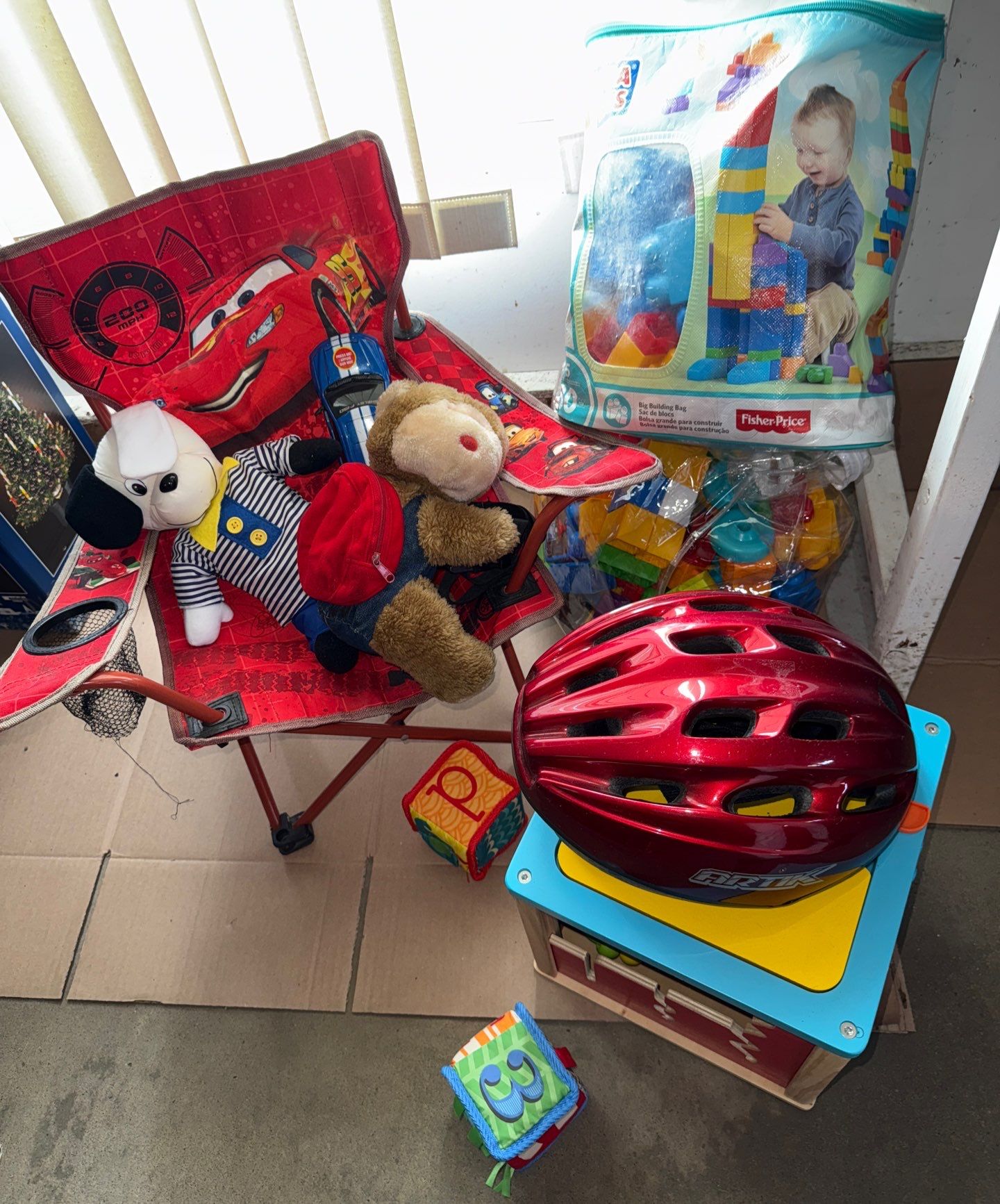 Cars Folding Camp Chair w/ Toy Chest Baby Building Blocks Bicycle Helmet & More