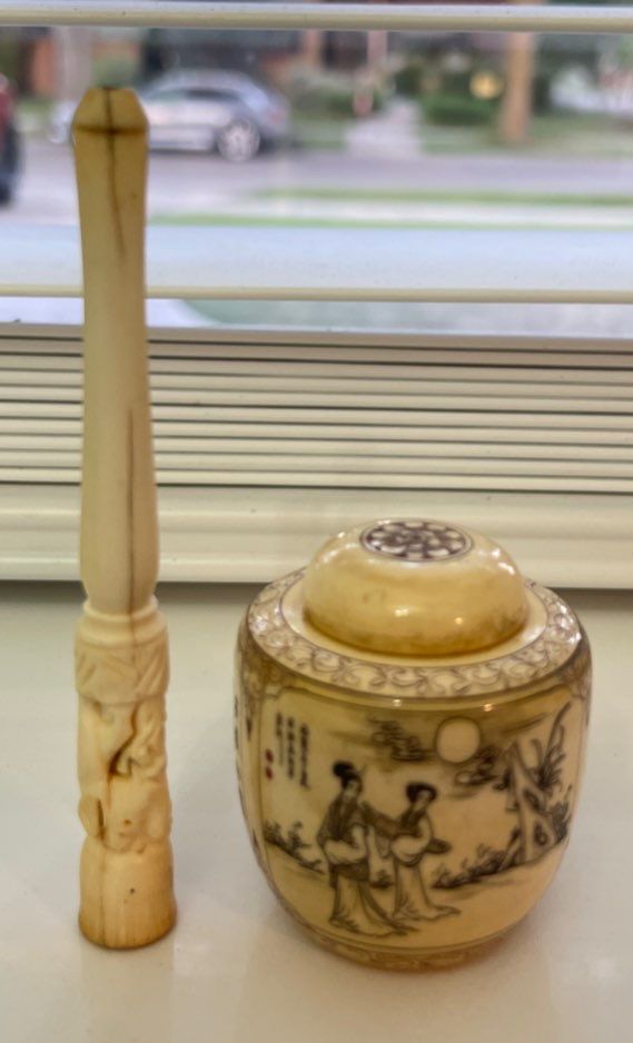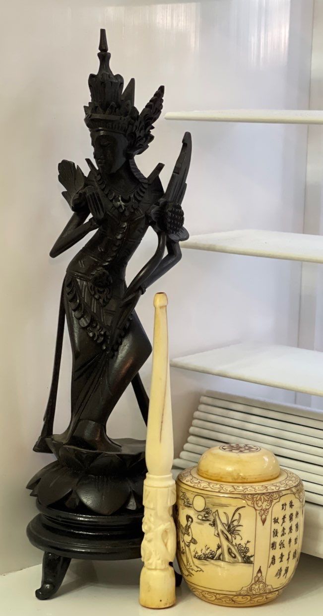 Carved Ebony Wood Balinese Fine Goddess Carving Figure & Chinese Snuff Bottles