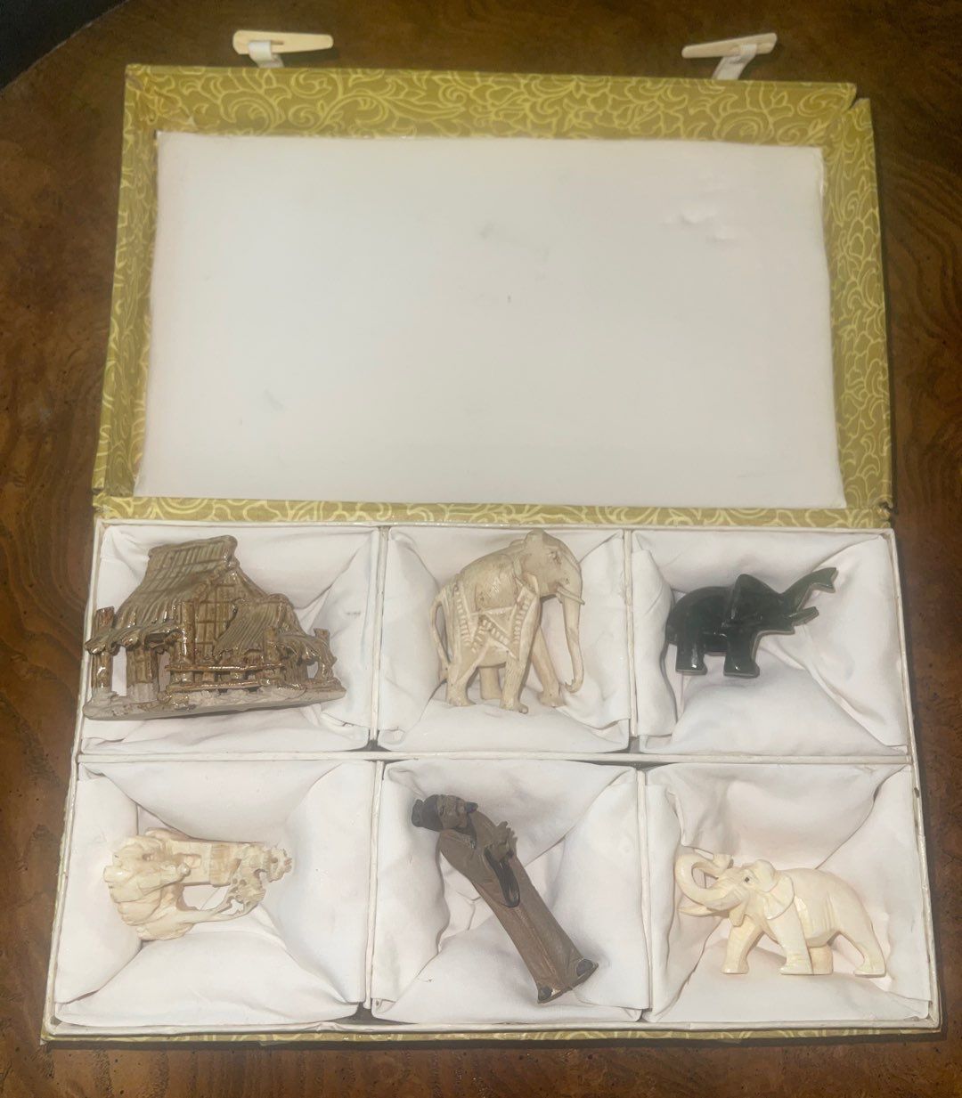 Carved Japanese Bone Figurines from Ancient Times in Box