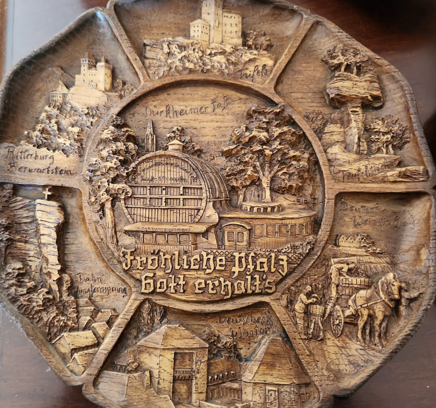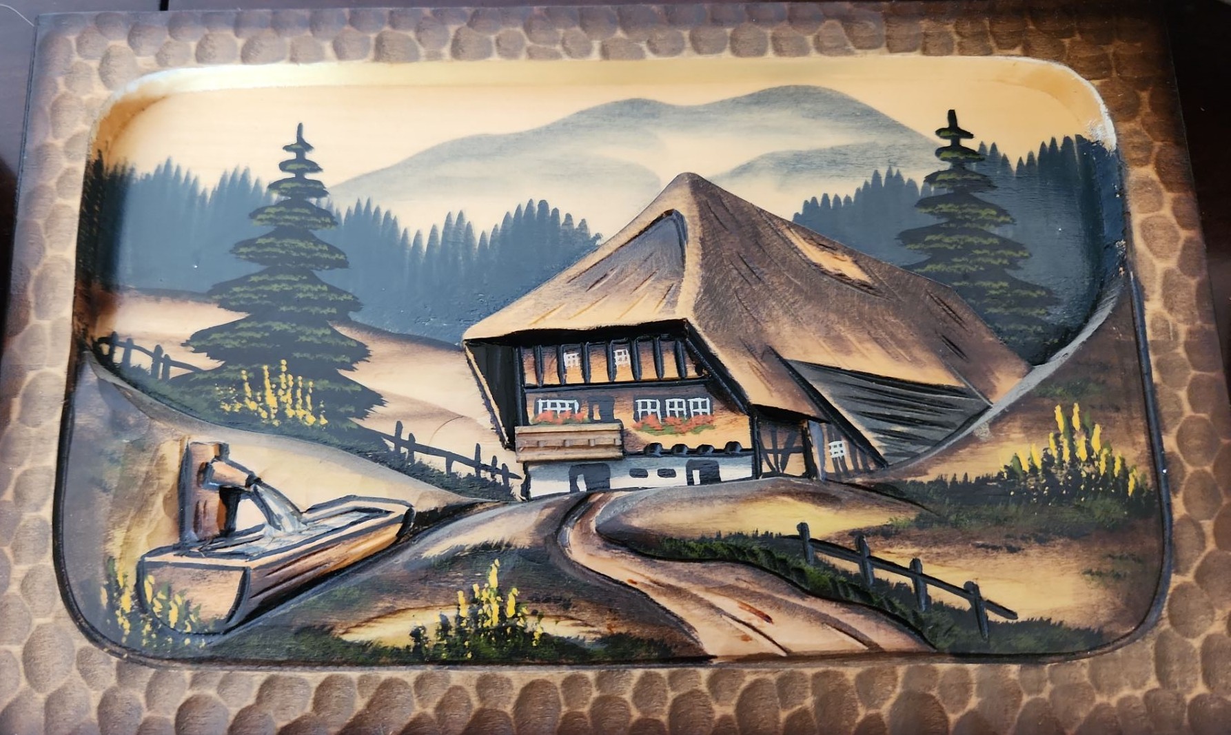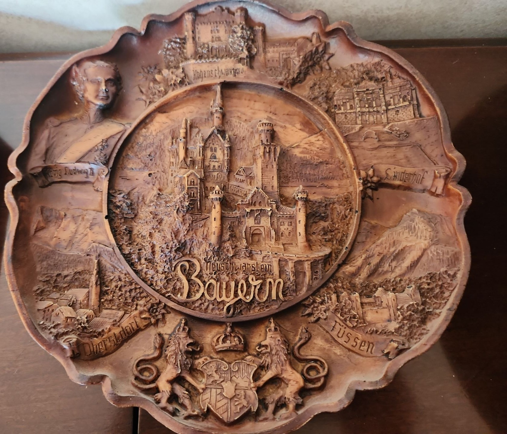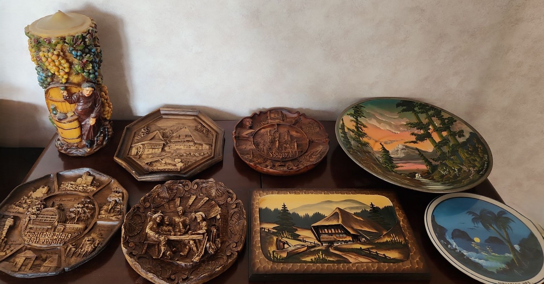 Carved Wooden Plates Largest 9" Diameter, Candle 11 T, Painted Pan/Plate 12.5 and 8" Diameters
