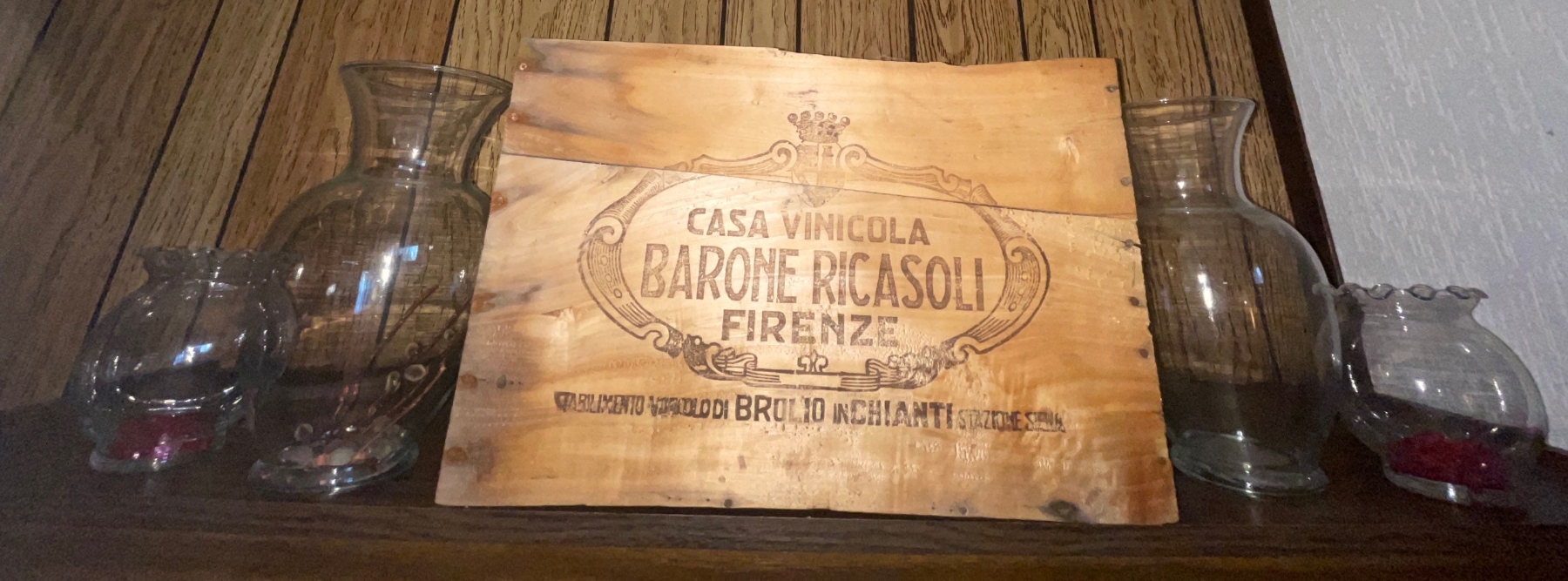 Casa Vini Cola Barone Ricasole Wooden Box/ Crate Filled w/Vases & Mini Spoons