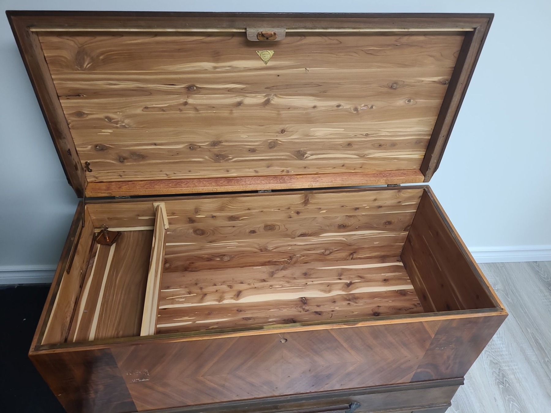 Cedar- lined chest with drawer (bottom won't properly open) - 39W, 18D, 24T