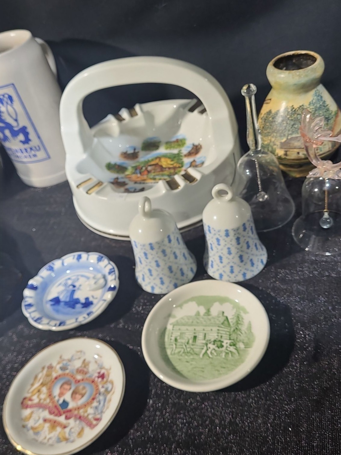 Ceramic Pig 5.5 W, 6.5 D, 9 T, "Tea Rose" Plate 10.5 X 9, Hummingbird Glass Bell 5.5 T and More!