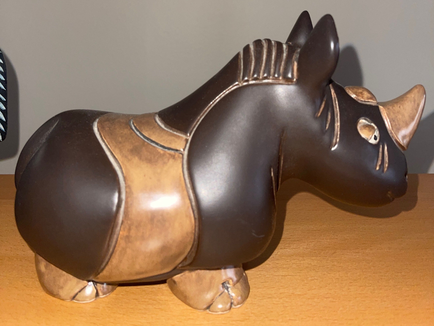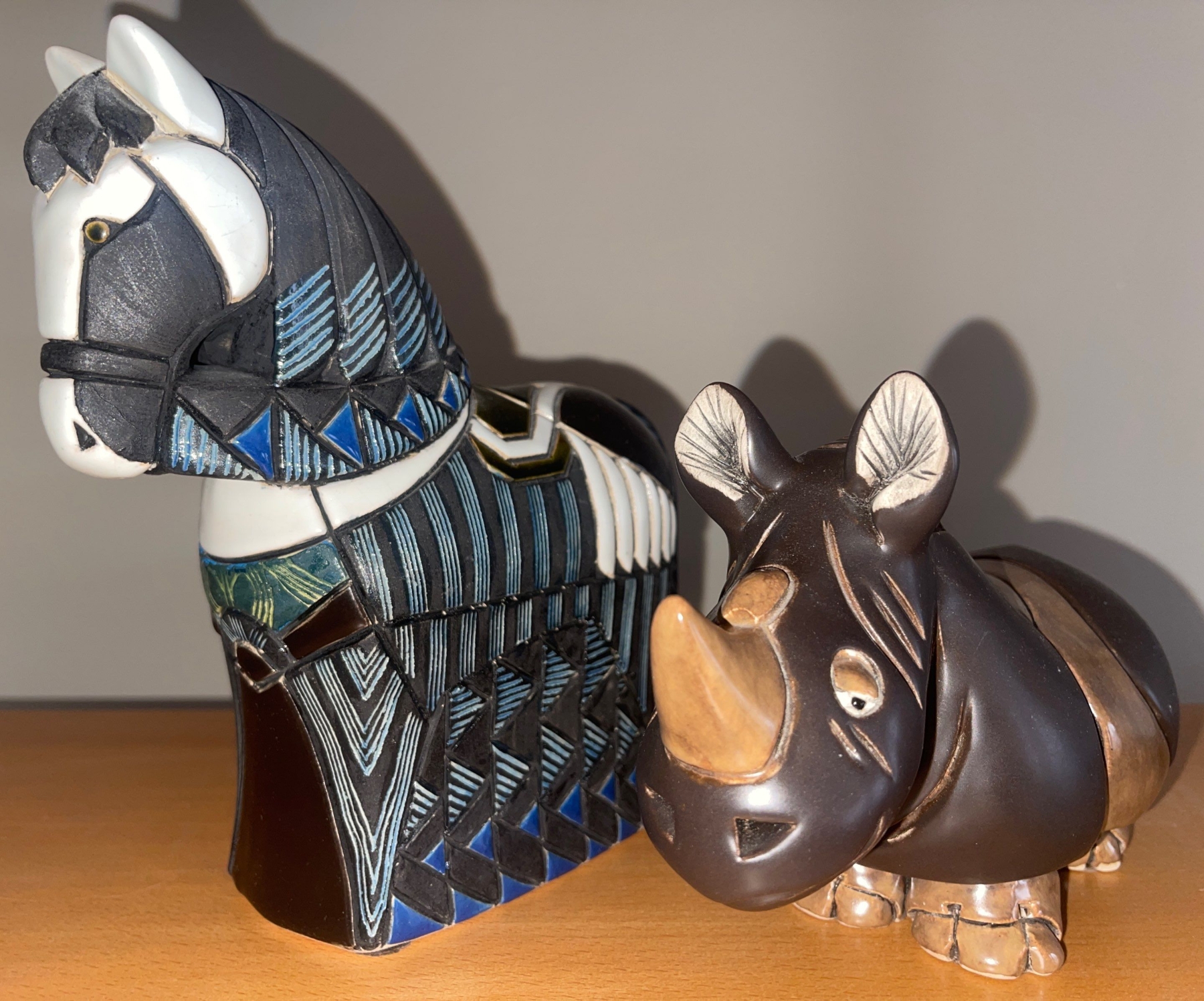 Ceramic Sculpture of Artesania Rinconada Large Horse 10"tall & A Rhinoceros Sculpture/Statue 5" tall
