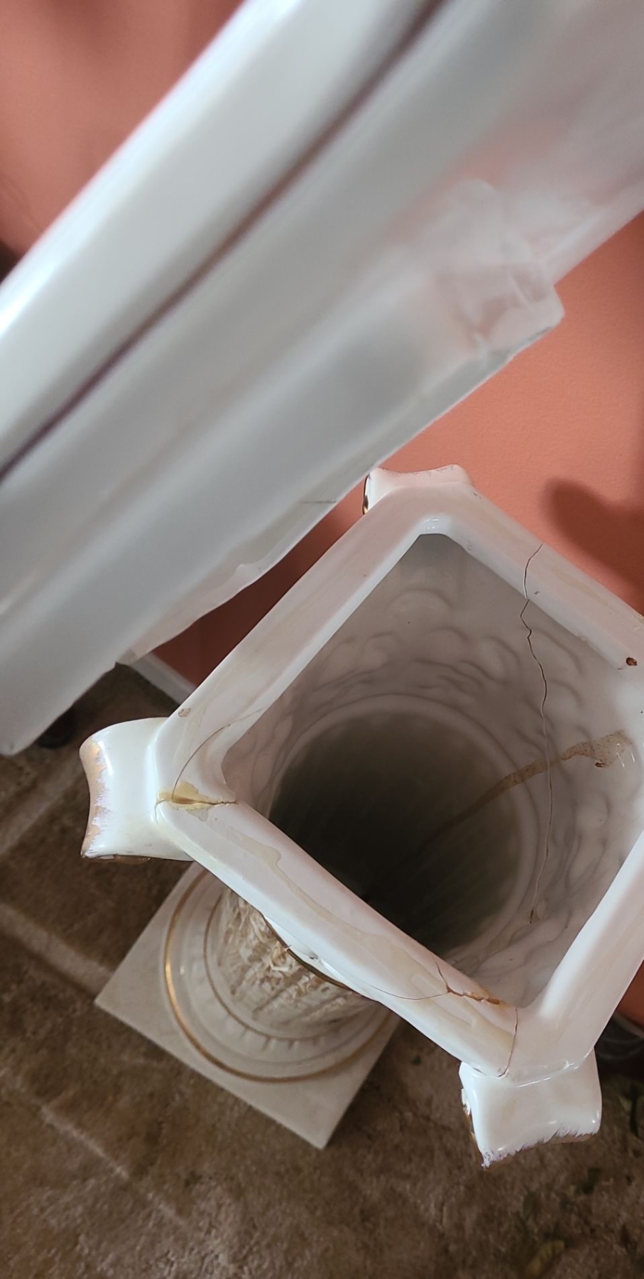 Faux Marble Top is Cracked, Cracked on Base, Small Cracks Throughout