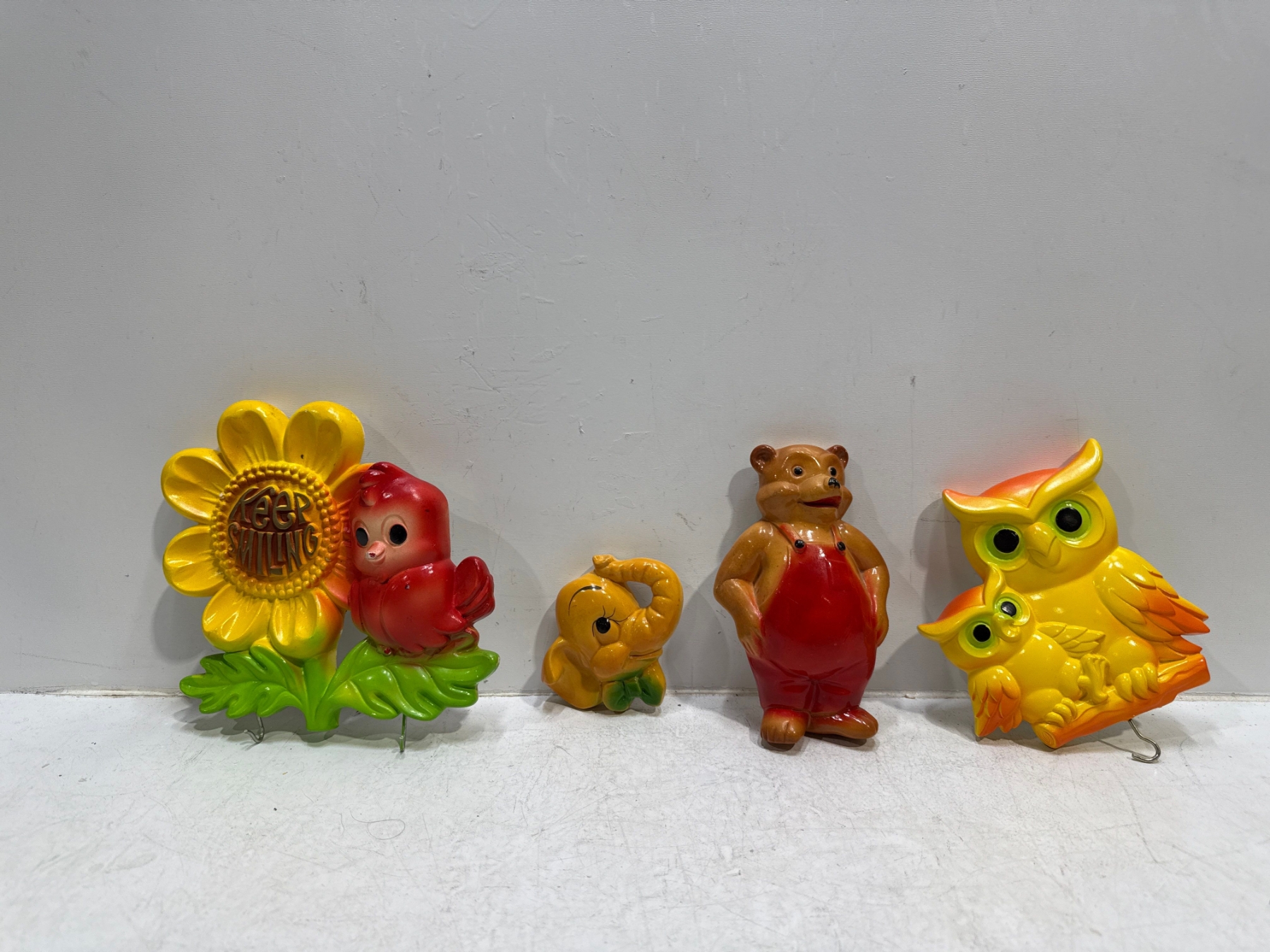Chalk Animals, Elephant, Bear in Red Overalls, Yellow Owls, Red Bird