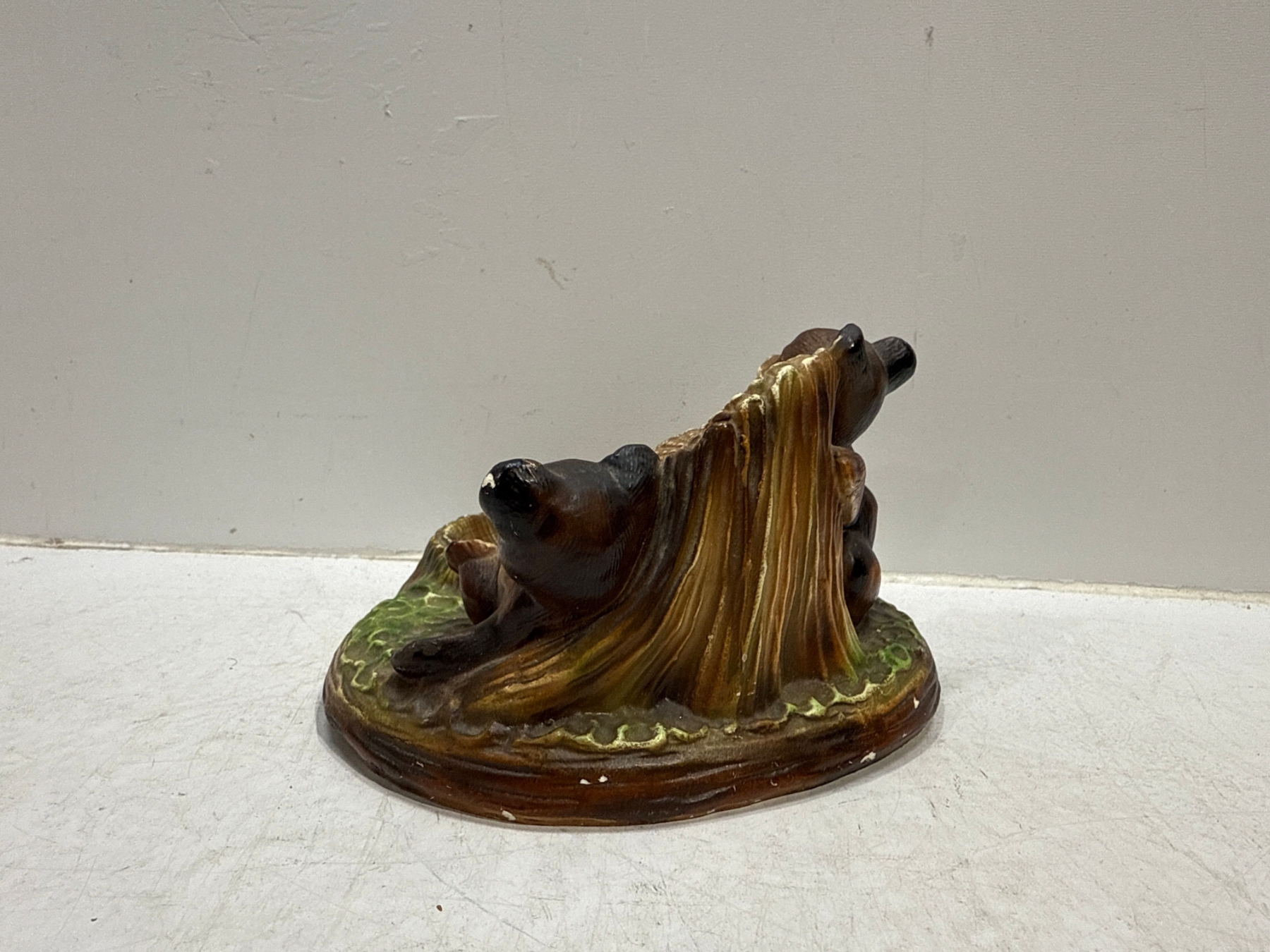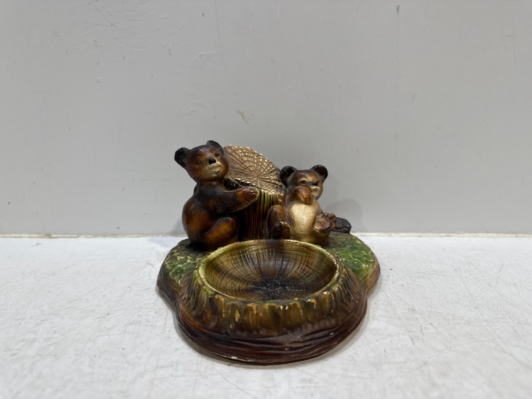 Chalk Bear Cubs Sitting Next to Tree Stumps Ashtray 6.5W