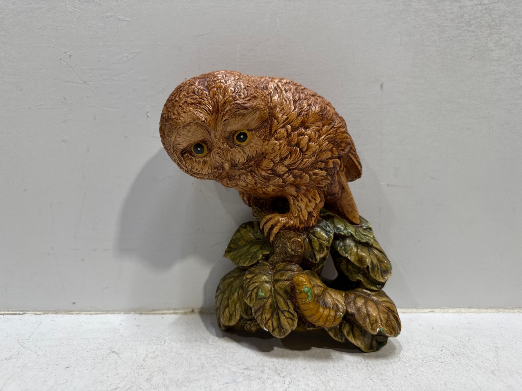 Chalk Bird, Brown Owl Watching a Caterpillar