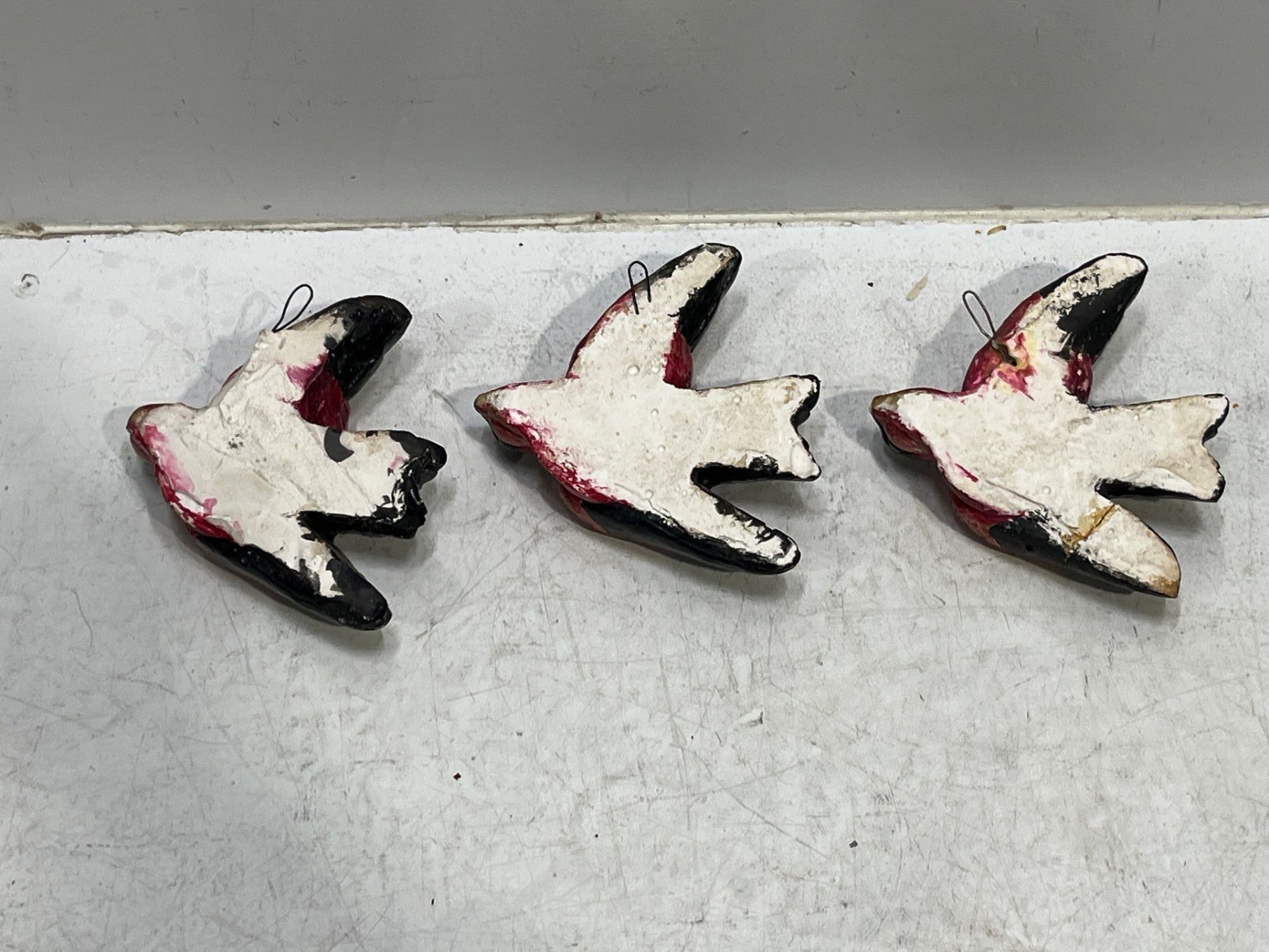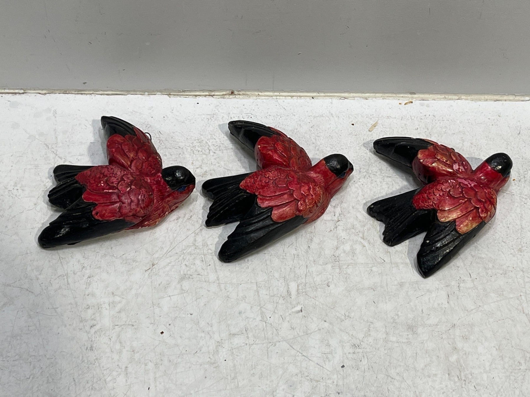 Chalk Birds, Set of Three Red/Black Flying Birds