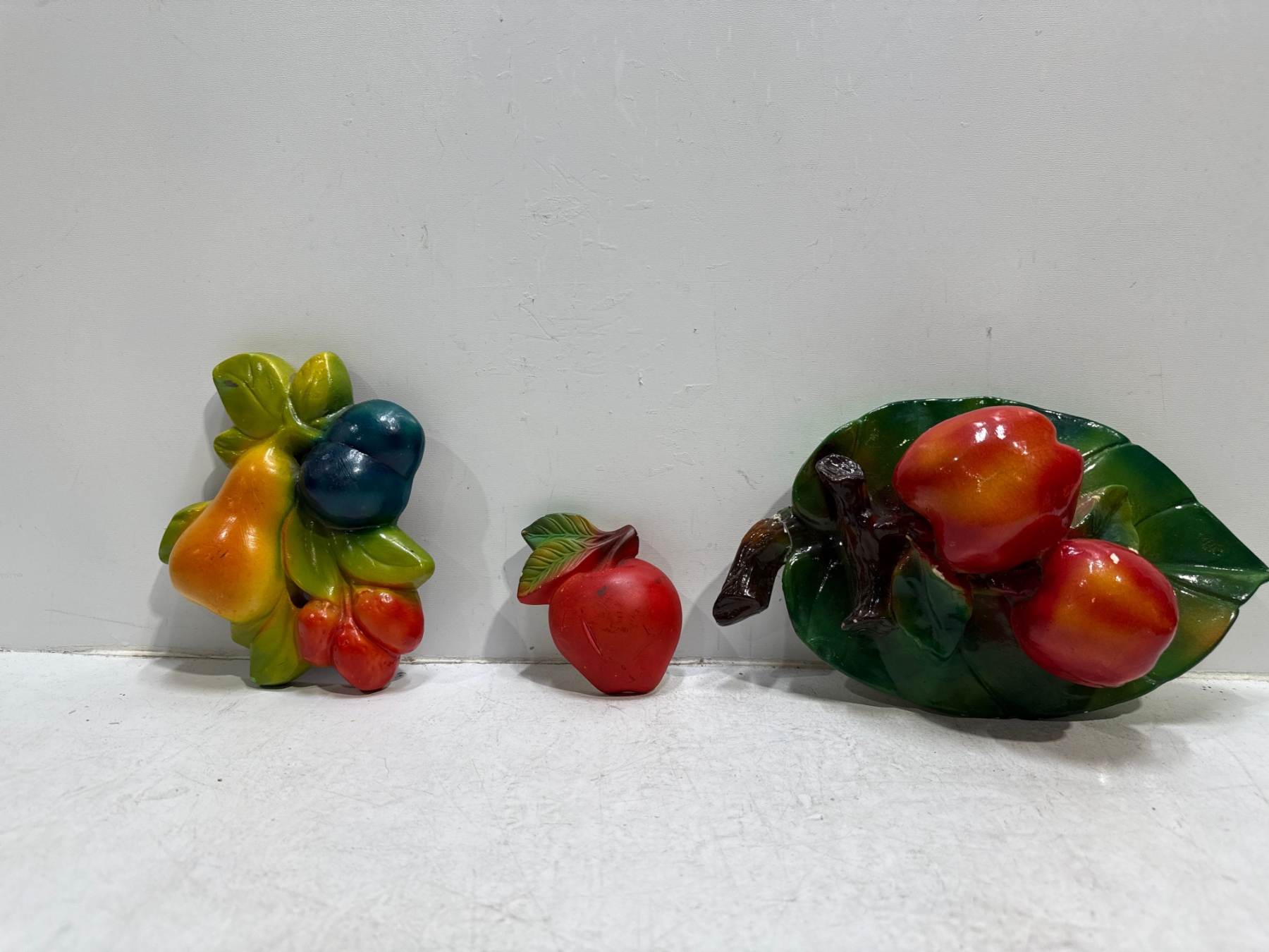 Chalk Fruit, Cherries, Pear, Plums, & Apples on Leaf