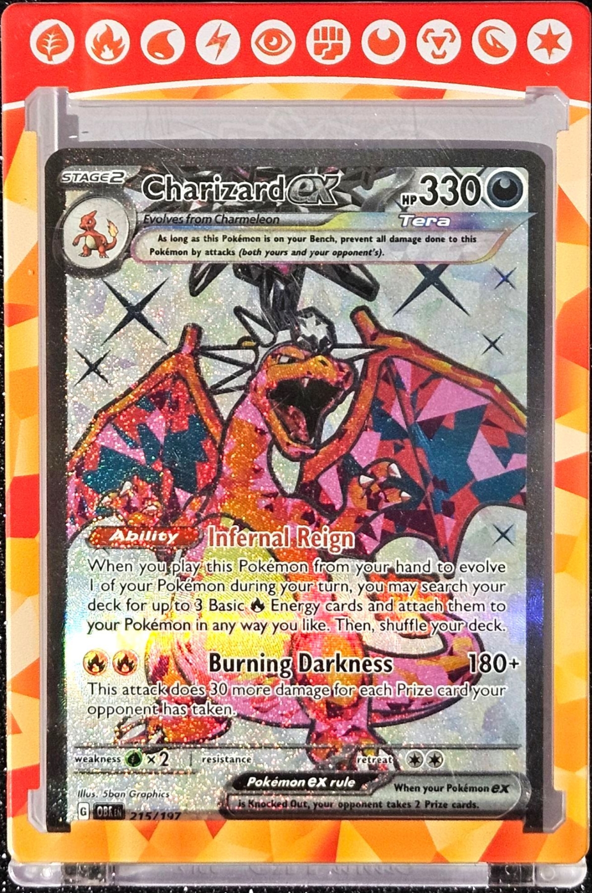 Pokémon Scarlet & Violet Obsidian Flames Tera Charizard EX in Official Pokemon Display Case. In excellent condition.