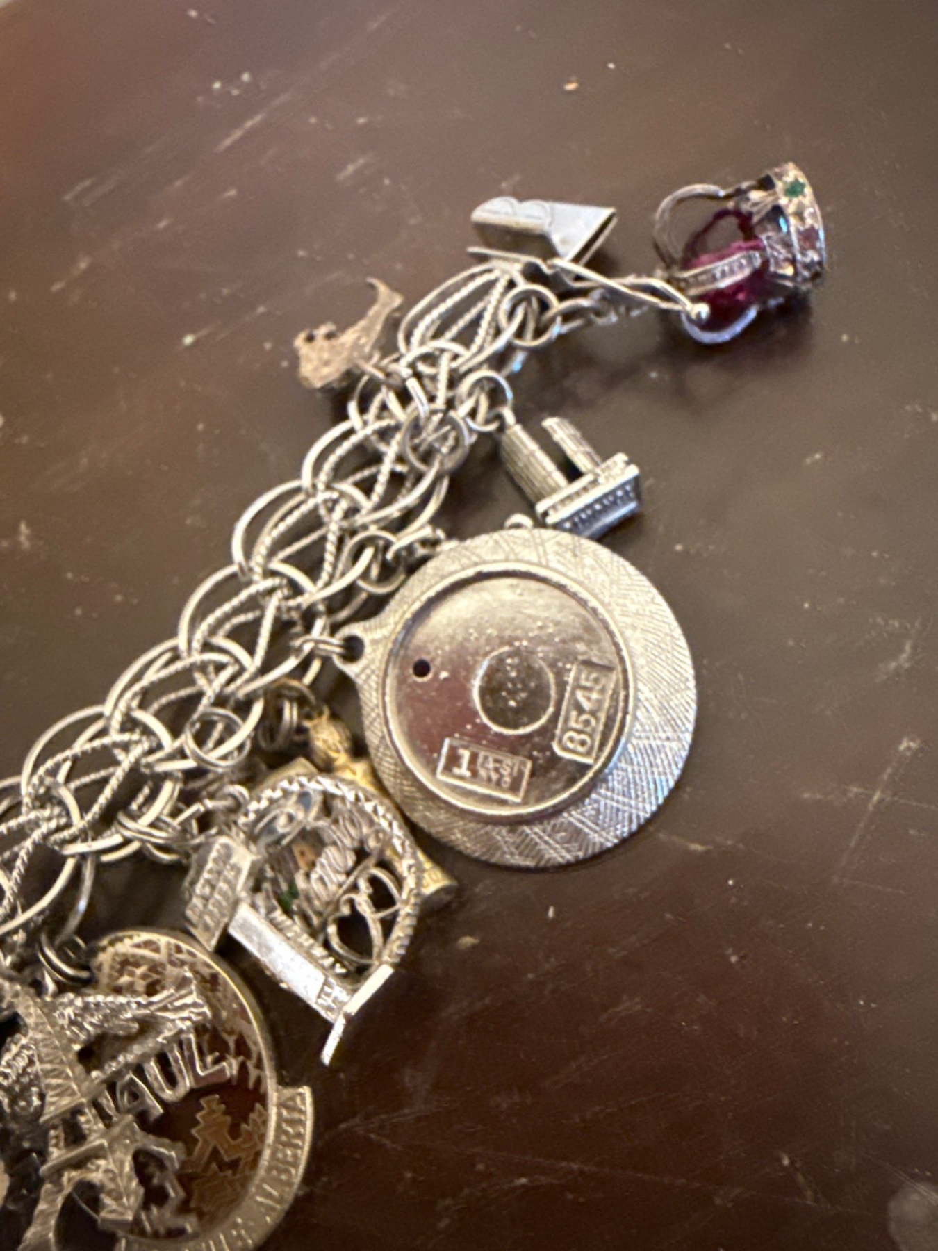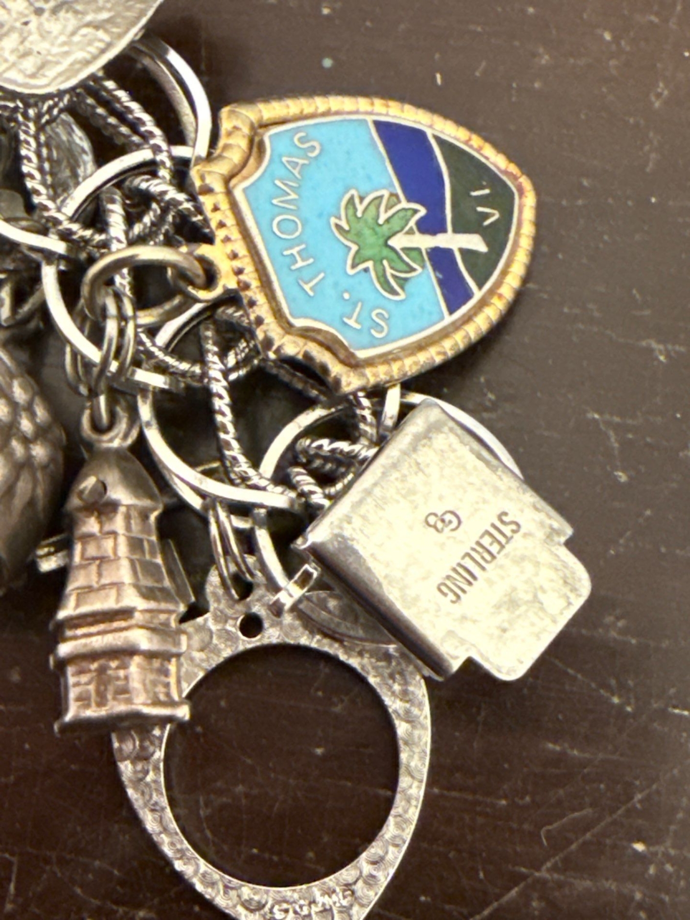 Charm Bracelet Stamped Sterling, Bracelet w/ Charms Weighs 73.75g