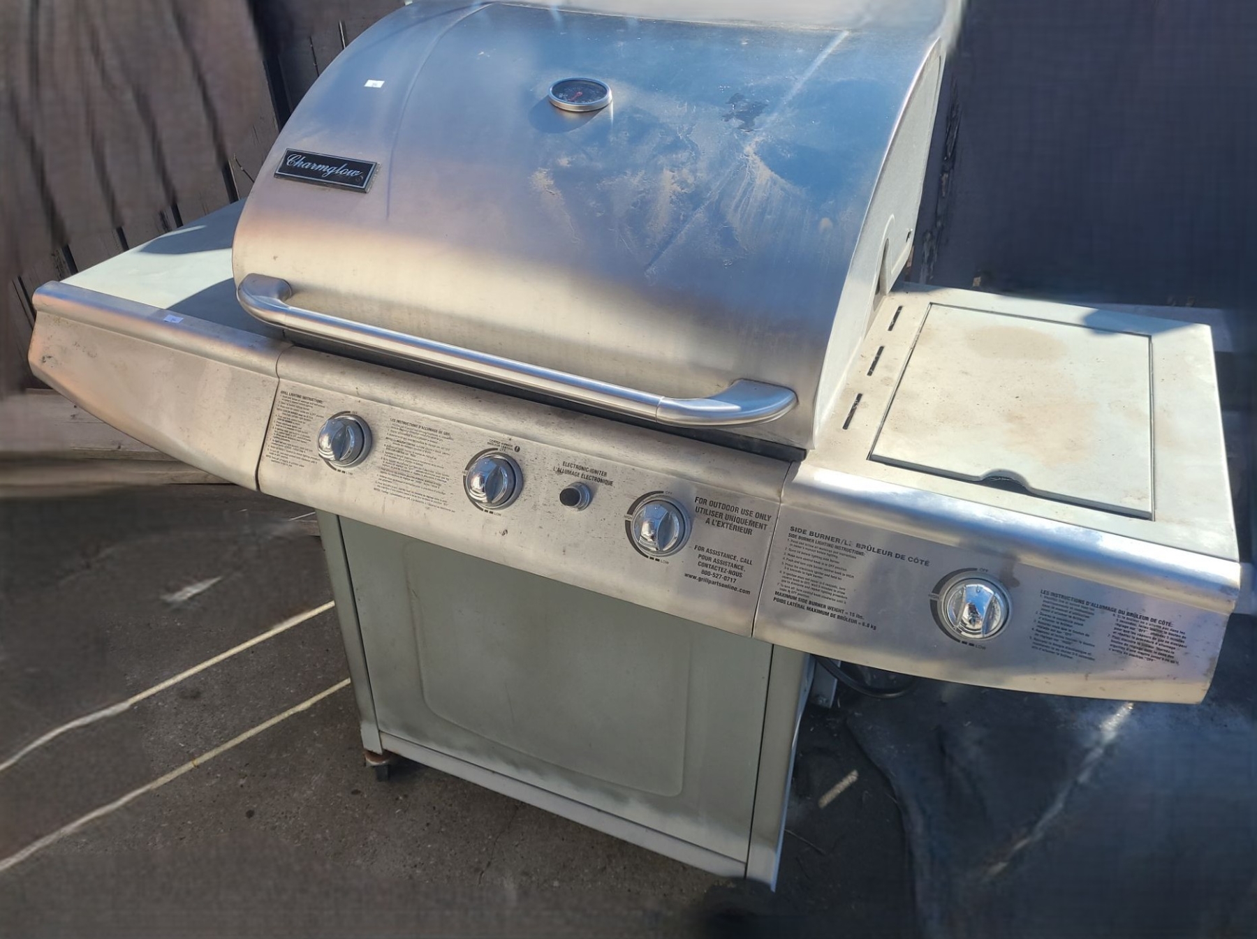 Charmglow Propane BBQ w/ Side Burner 57 W, 23 D, 48 T, Includes Cover and Tank