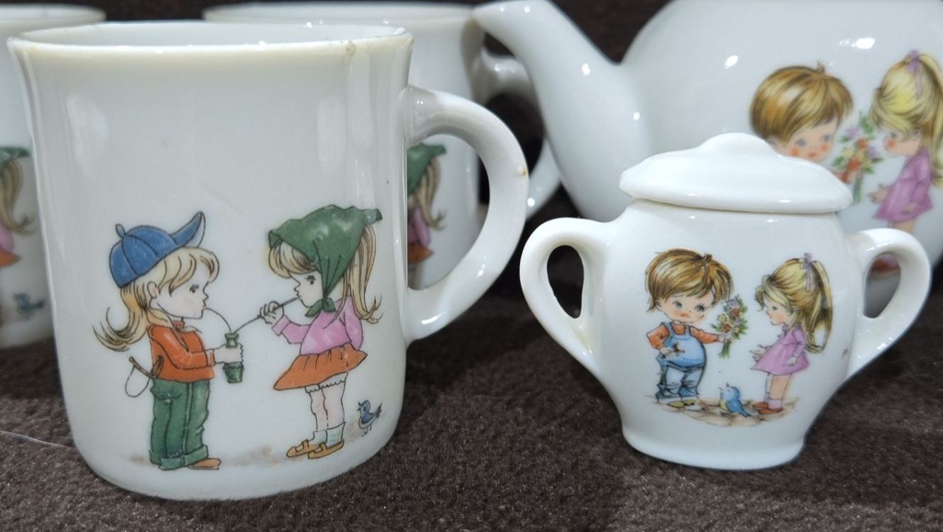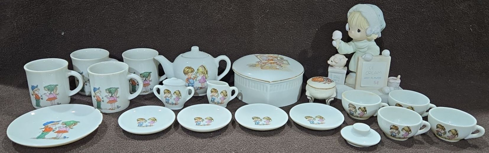 Children's Collectible Porcelain China Set W/2 Trinket Dishes + 1987 Precious Moments Figurine
