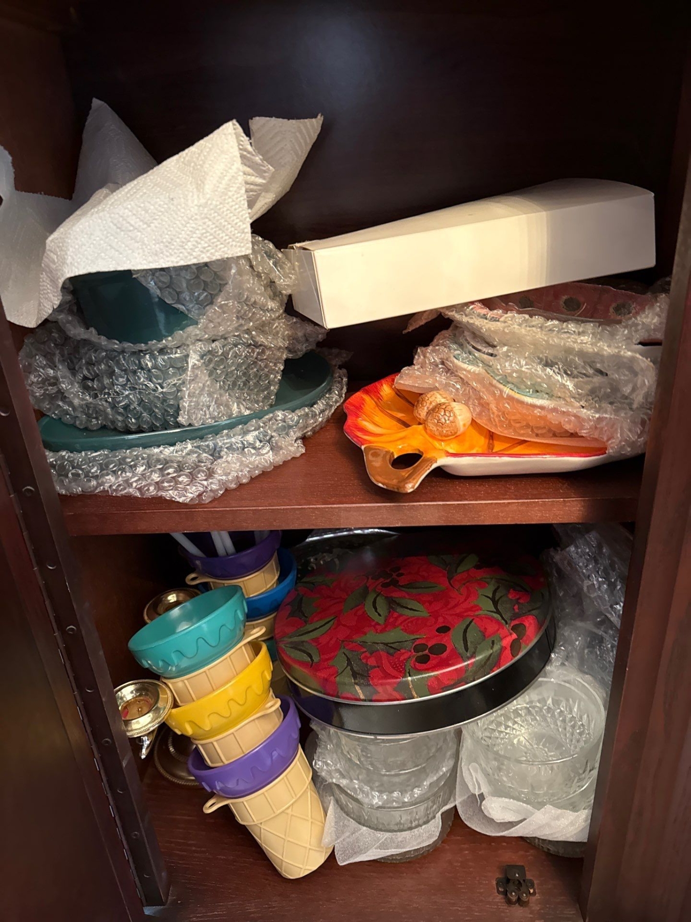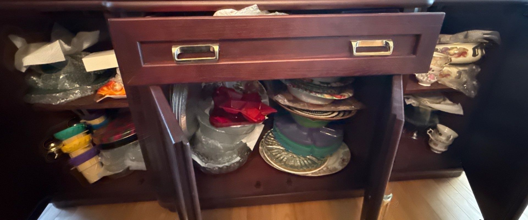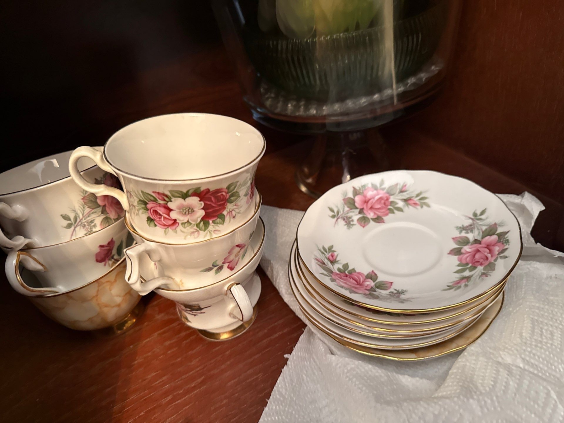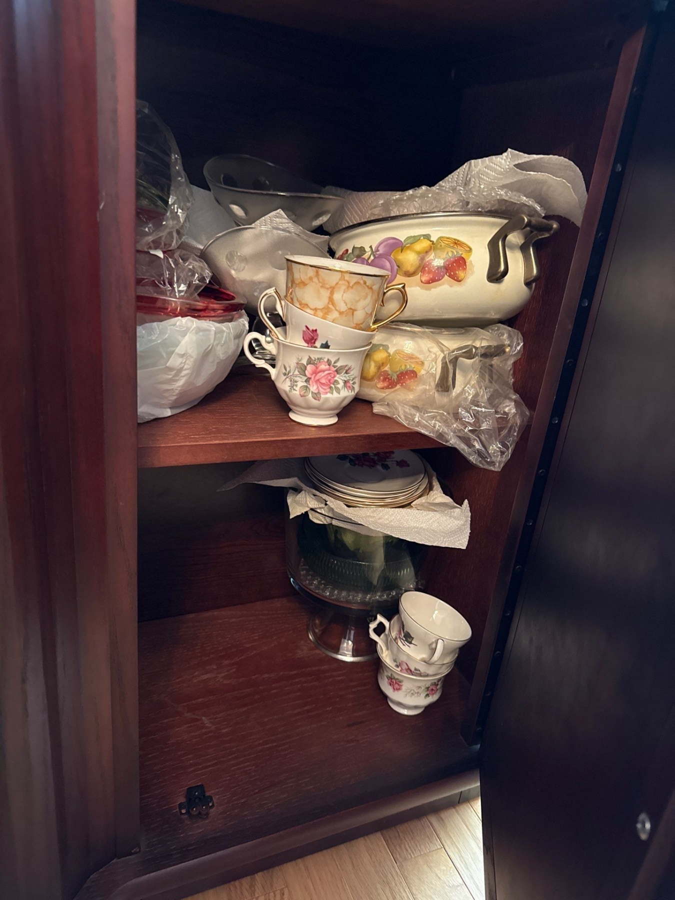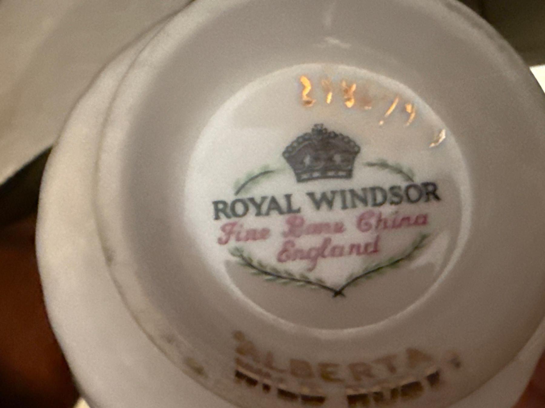 China Cabinet Contents. Glassware, China Cups & Saucers (Royal Windsor, Queen Anne, Society), More