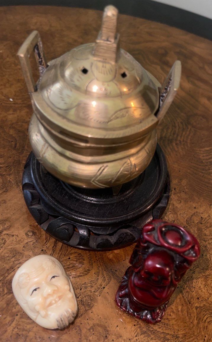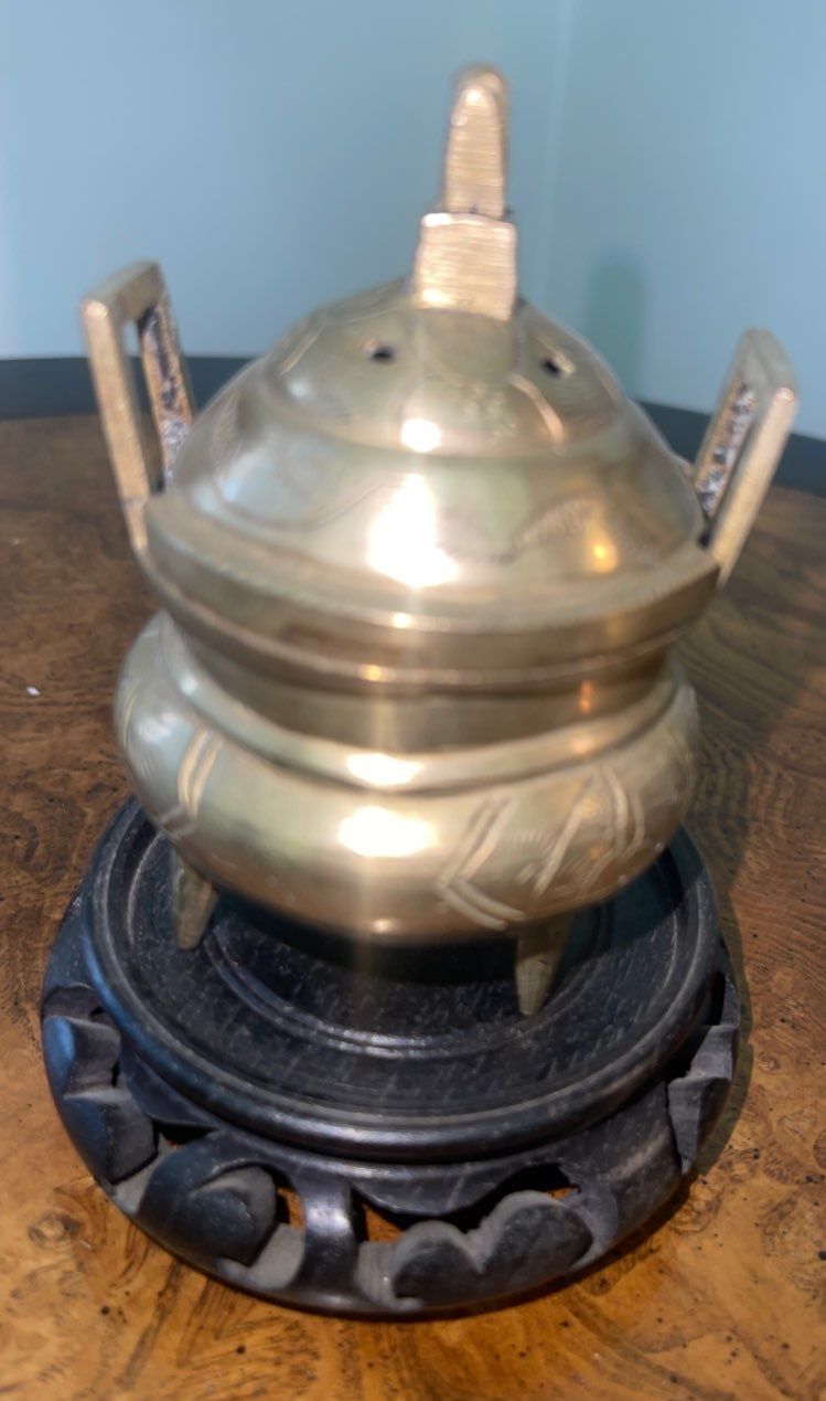 Footed Brass Urn w/ Lid & Hand Carved Pedestal 3.5T