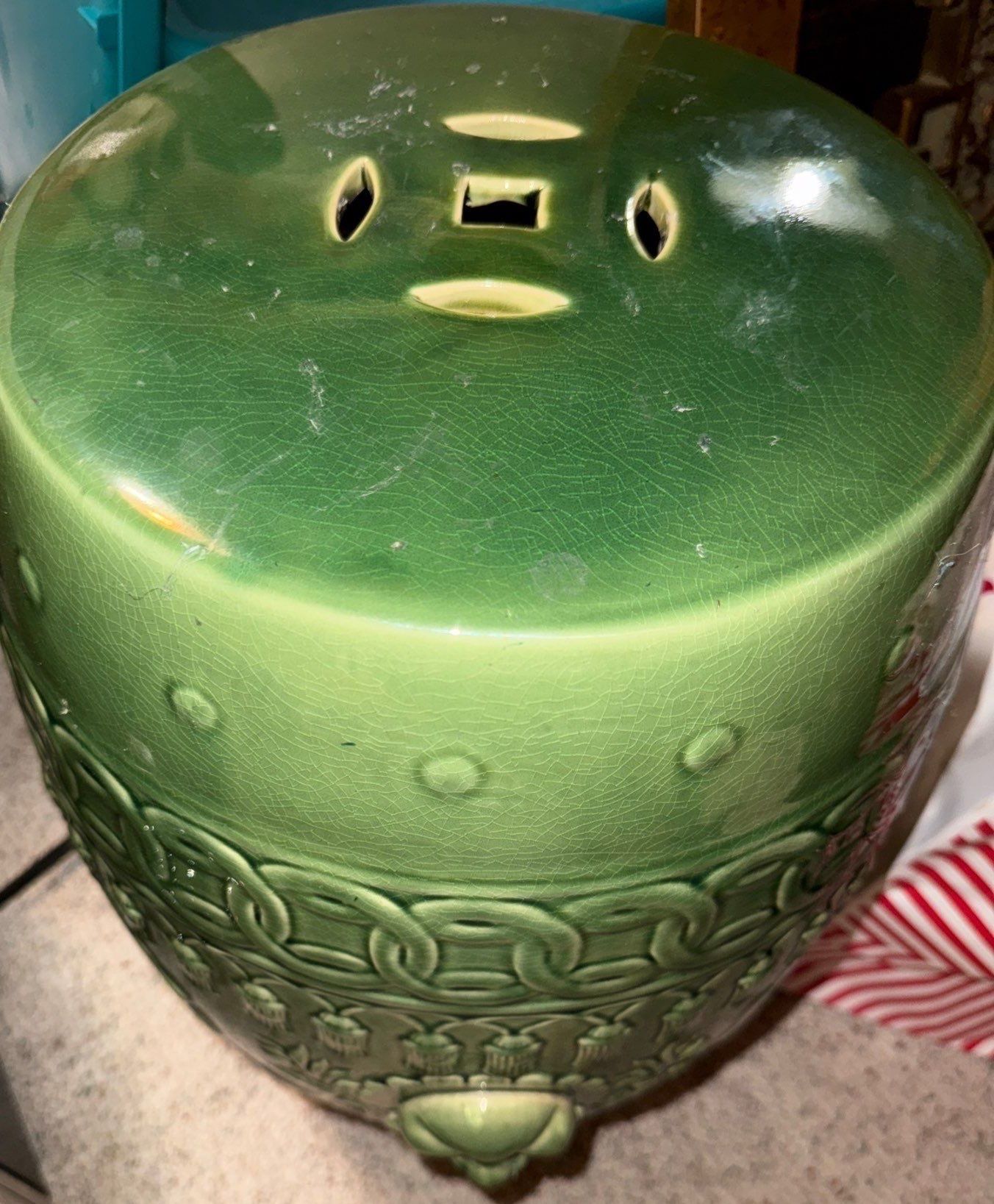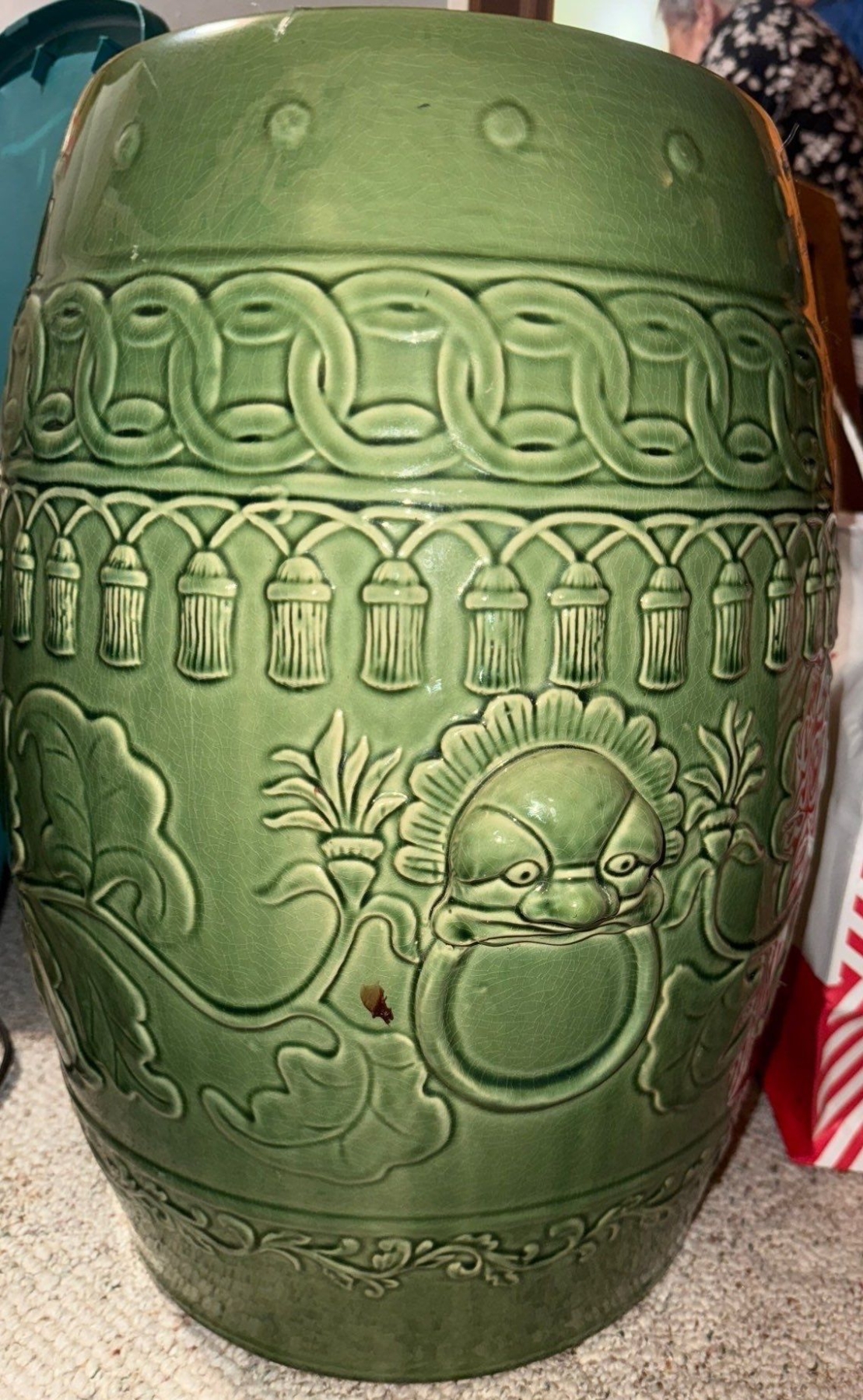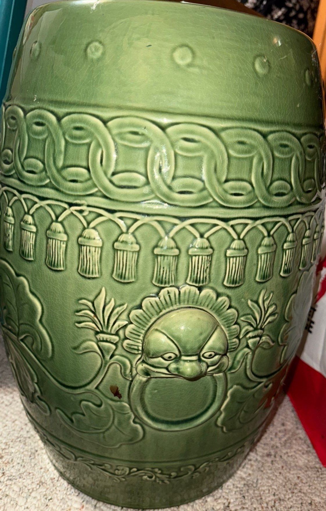 Chinese Green Majolica Garden Seat / Pedestal - Ceramic Barrel 21T