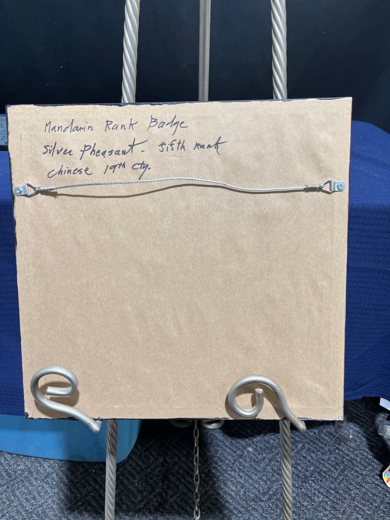 Chinese Rank Badge, Silver Pheasant 5th Rank 12Wx12H
