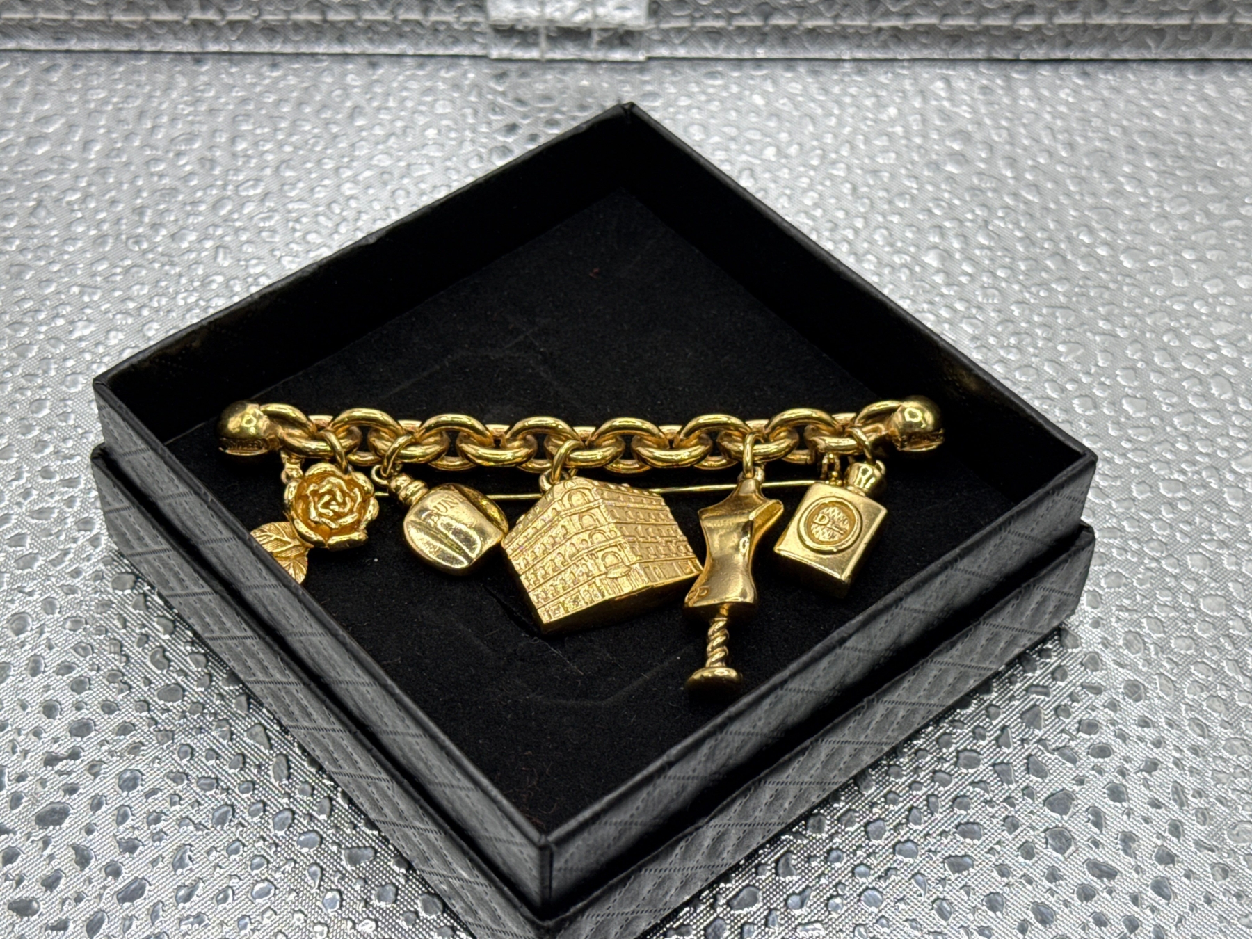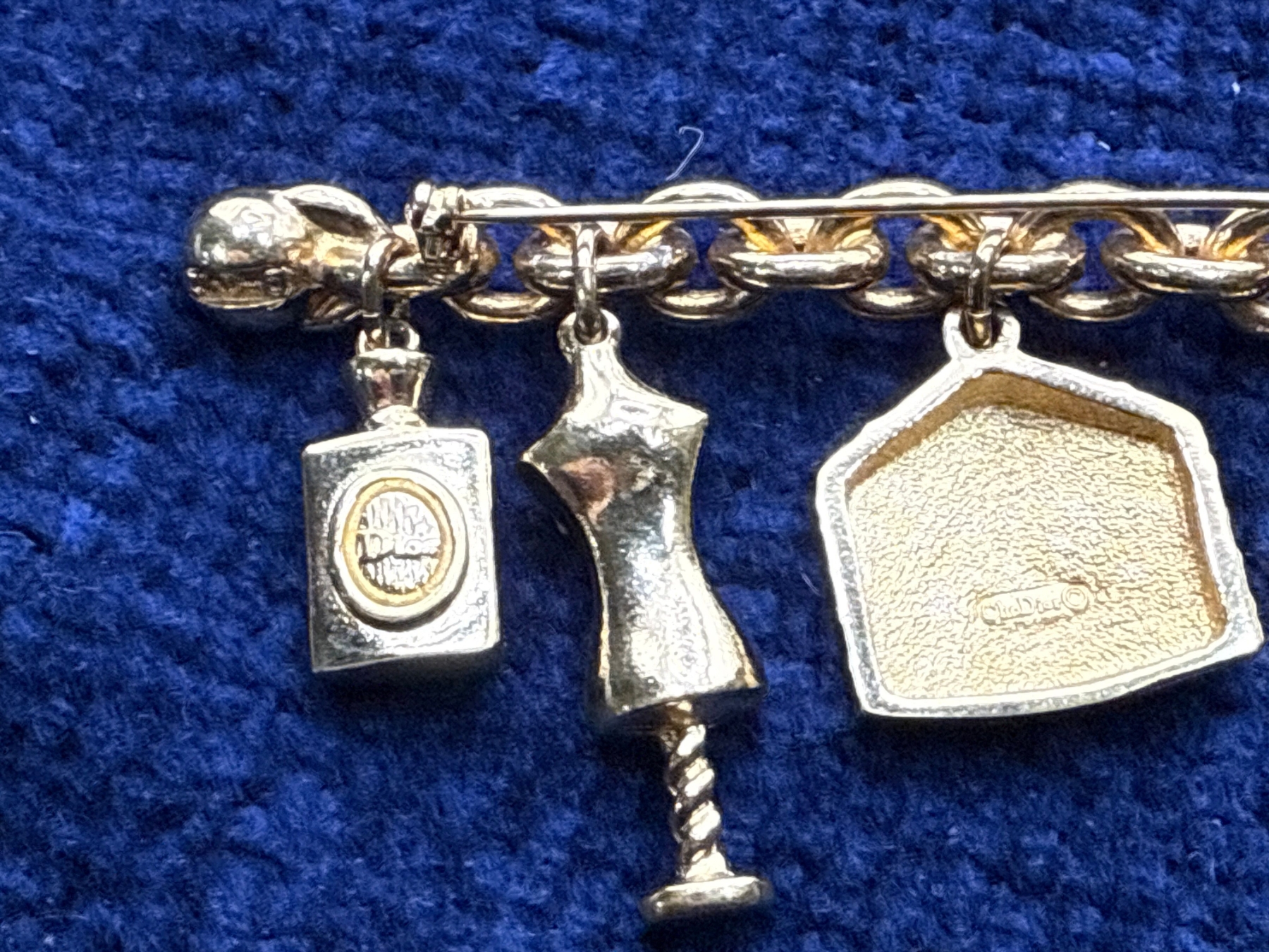 authentic gold charm brooch with Christian Dior signature