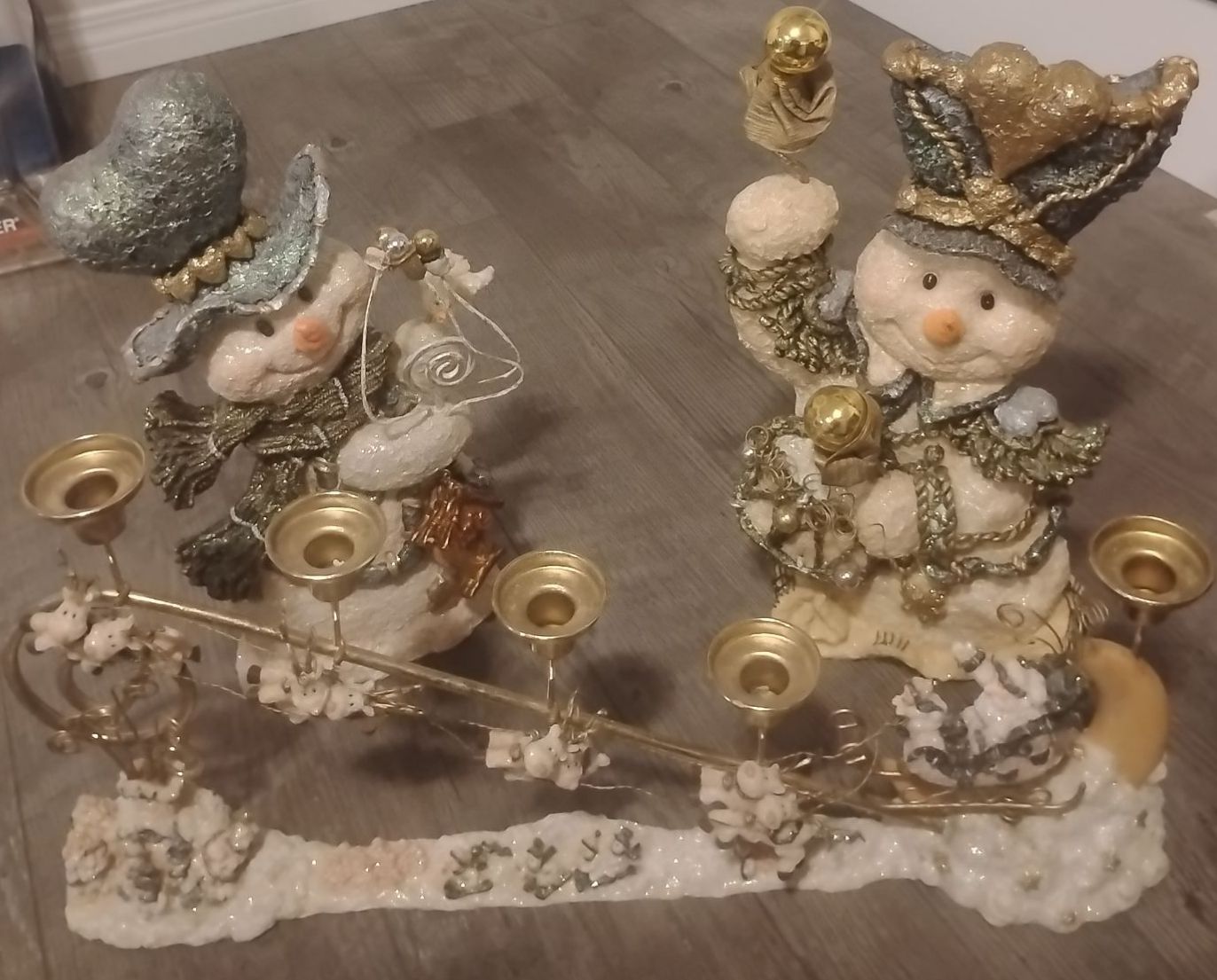 Christmas Candle Holder w/ Snowmen Holiday Decorations 13T